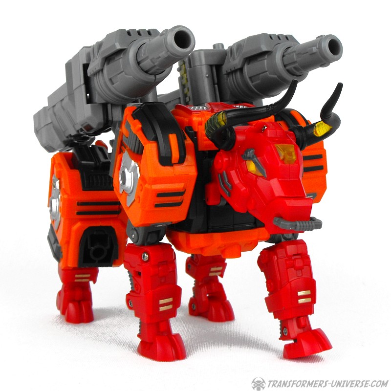 Aethongs große Kanonen können auch hier auf dem Rücken montiert werden, um dem Büffel Feuerkraft zu geben. Persönlich gefällt mir das hier besser als beim Biestmodus von Conabus, aber das ist natürlich subjektiv. Insgesamt gibt es hier keinen Grund zur Beschwerde, ein gut gemachter, gut aussehender Biestmodus.