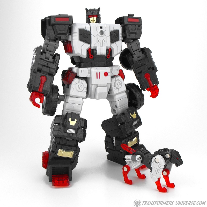 Combiner Modus: Cerberus wird zum Unterleib samt Oberschenkeln des Hades Combiners. Ich schreibe eine separate Rezension zu Hades, sobald ich das Team beisammen habe.