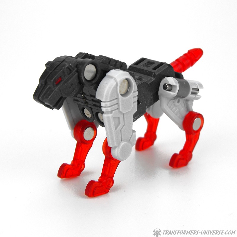 Partner / Zubehör: Cerberus‘ Brustplatte kann abgekoppelt werden und wird entweder zu einer Handwaffe (die auch oben auf dem Fahrzeugmodus montiert werden kann) oder zu einem kleinen Roboterjaguar. Das Tier sieht gut aus und ist so beweglich wie es bei der Größe wohl möglich ist. Das Brust-Tier von Jarugar hieß damals „Jaguarbreast“, die TFC Version hat keinen eigenen Namen. Unterm Strich: gute Umsetzung eines recht schrägen Gimmicks.