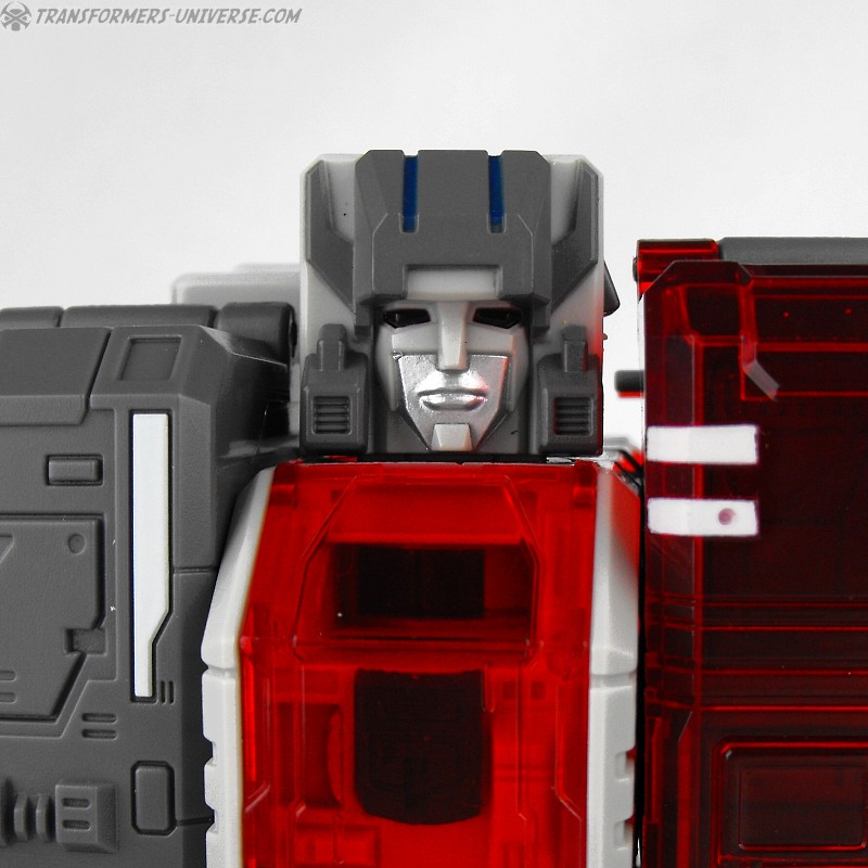 Partner: Als Headmaster kann Infinitor seinen Kopf abnehmen, der zu einem separaten Roboter (oder vielleicht auch einem pink- oder grünhäutigen Alien bzw. einem ehemaligen Teen-Sidekick in Rüstung, sucht’s euch aus) wird. Nun war der originale Fortress Maximus ja ein Double Headmaster. Der Kopf der Figur wurde zu Cerebros, dessen Kopf wiederum konnte ebenfalls abgenommen werden und wurde zu Spike (oder Galen oder dem eigentlichen Fortress). Angesichts der kleineren Größe wäre das hier kaum umsetzbar gewesen, somit ist Infinitor ein „normaler“ Headmaster. Die kleinere Figur ist schön gemacht, sehr beweglich dank Kugelgelenken und ähnelt stark Cerebros (bis auf den Kopf, der genauso aussieht wie der von Infinitor). Schön gemacht, allerdings ist hier anders als bei Wardens Headmaster das größere Gesicht auf dem Rücken der Figur nicht versteckt.