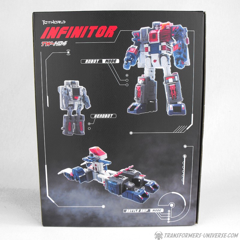 Vorwort: Infinitor ist keine Figur von Hasbro oder Takara-Tomy und somit nicht offiziell ein Transformer. Er stammt vom Drittanbieter Toyworld und soll natürlich Fortress Maximus darstellen, darf aus rechtlichen Gründen aber nicht so heißen. Diese Rezension ist übrigens zwei Menschen gewidmet. Zum einen meiner geliebten Frau, von der ich Infinitor zum Geburtstag bekommen habe, sowie zum anderen meinem guten Freund James, der mich herausgefordert hat eine Rezension zu schreiben, die ihn zum Kauf von Mini-Max (wie er ihn nennt) überredet. Herausforderung angenommen, Jim, mal sehen ob ich dich rumkriege.
