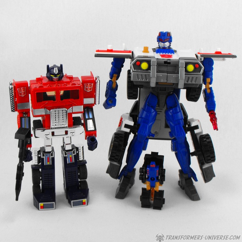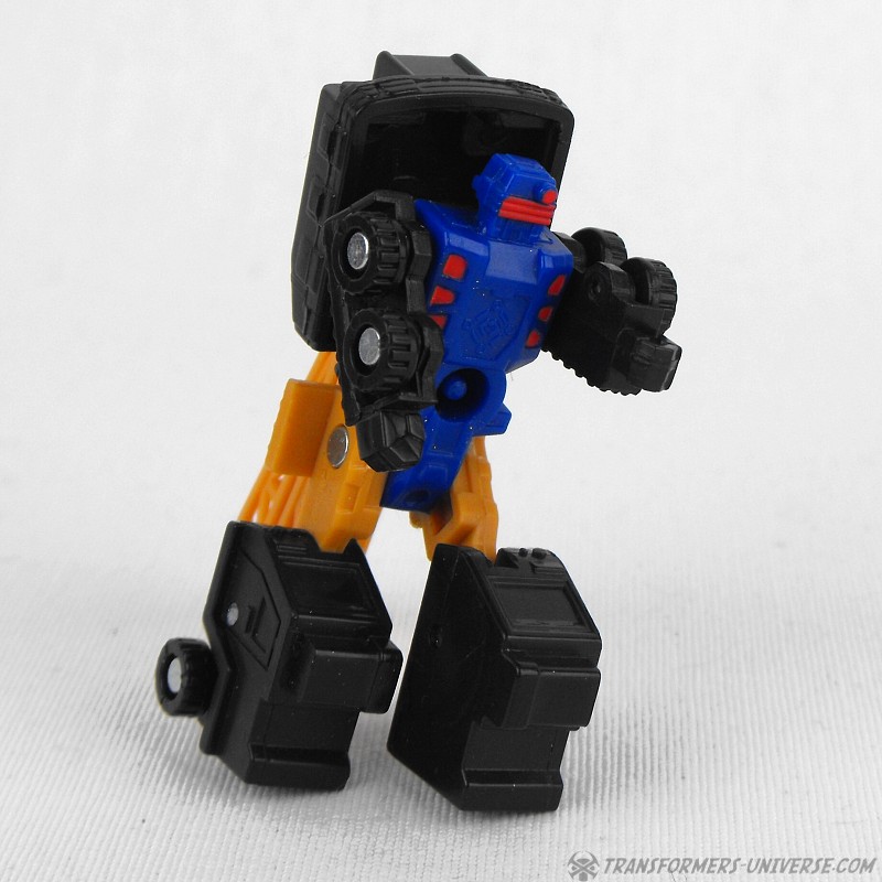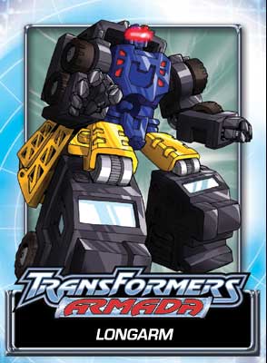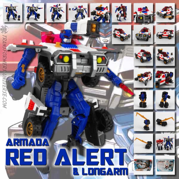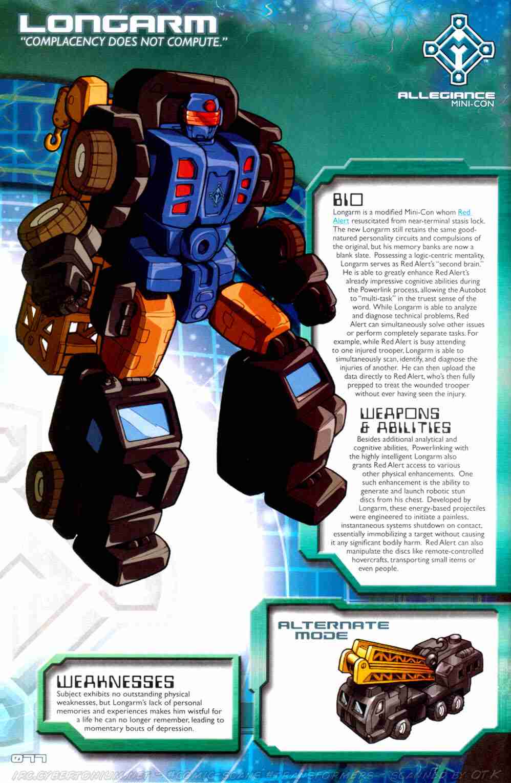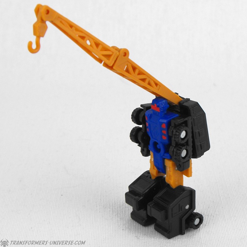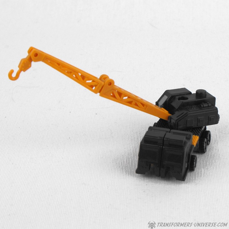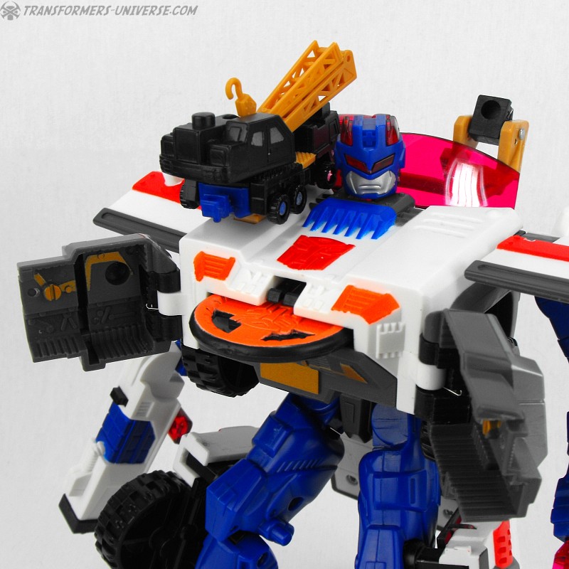 Partner / Zubehör: Red Alerts Minicon heißt Longarm und verwandelt sich in einen kleinen Kran. Er kann Red Alerts Raketen- und Diskuswerfer aktivieren und in beiden Modi an seiner Seite transportiert werden.
