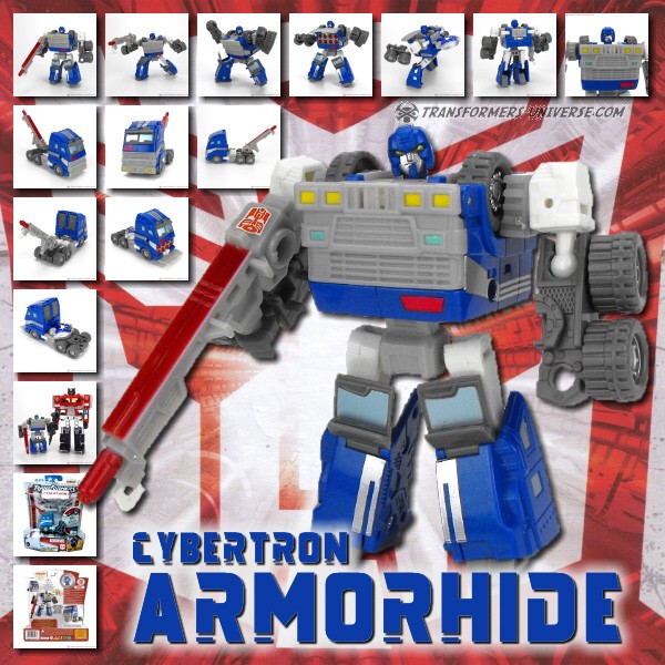 Bemerkungen: Als Figur erinnert mich Armorhide sehr stark an G1 Huffer, einen kleinen, starken Roboter, der zum Truck transformierte. Für einen Transformer der Scout Klasse ist Armorhide okay, wenn auch ein wenig langweilig, und bietet wenig Grund zur Klage oder zur Lobpreisung. Eine anständige Figur, nicht mehr als das. Empfohlen jenen, die ihre Cybertron Sammlung vervollständigen wollen.