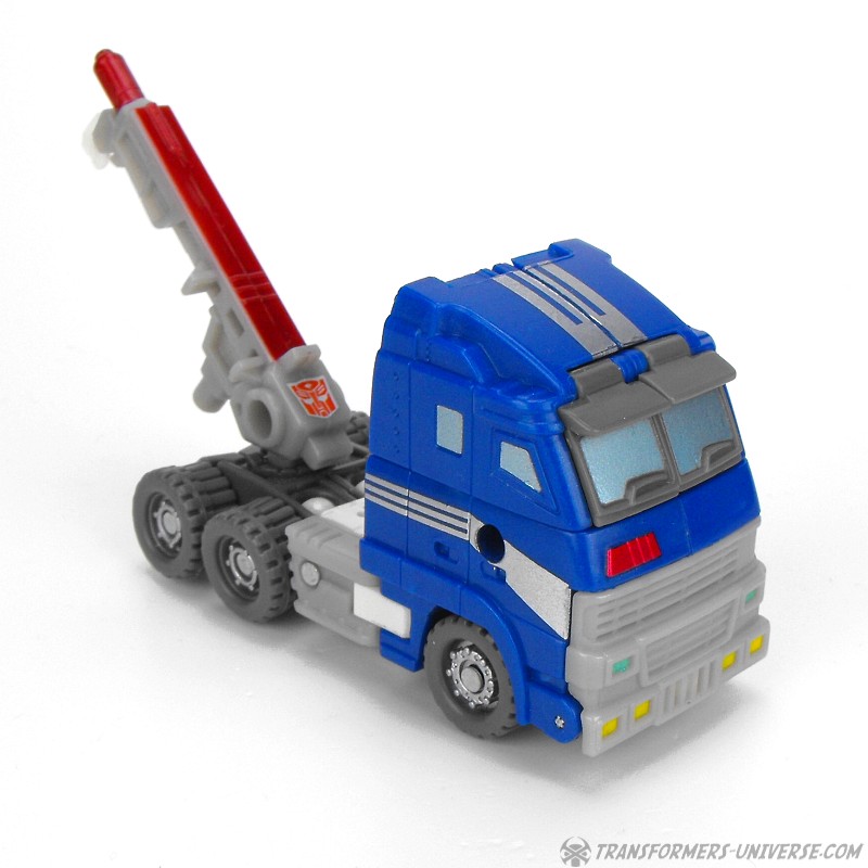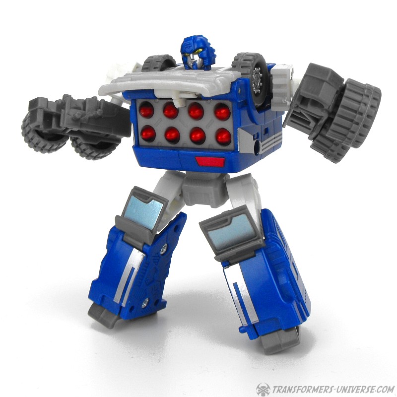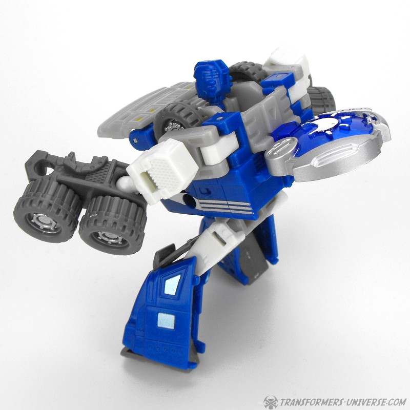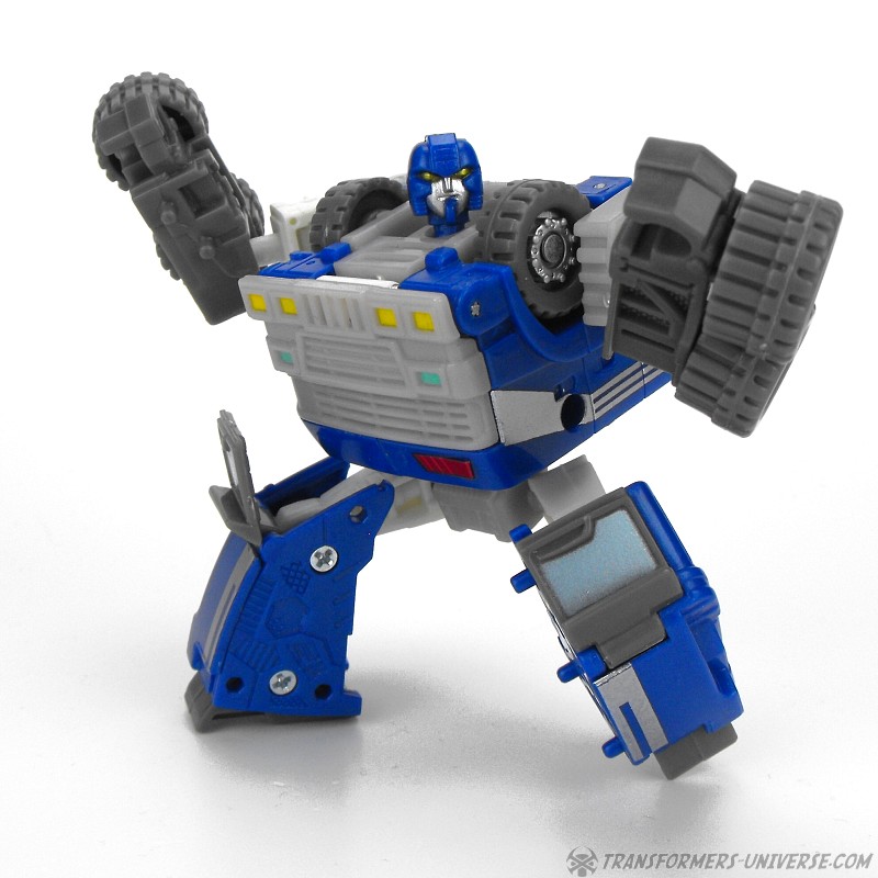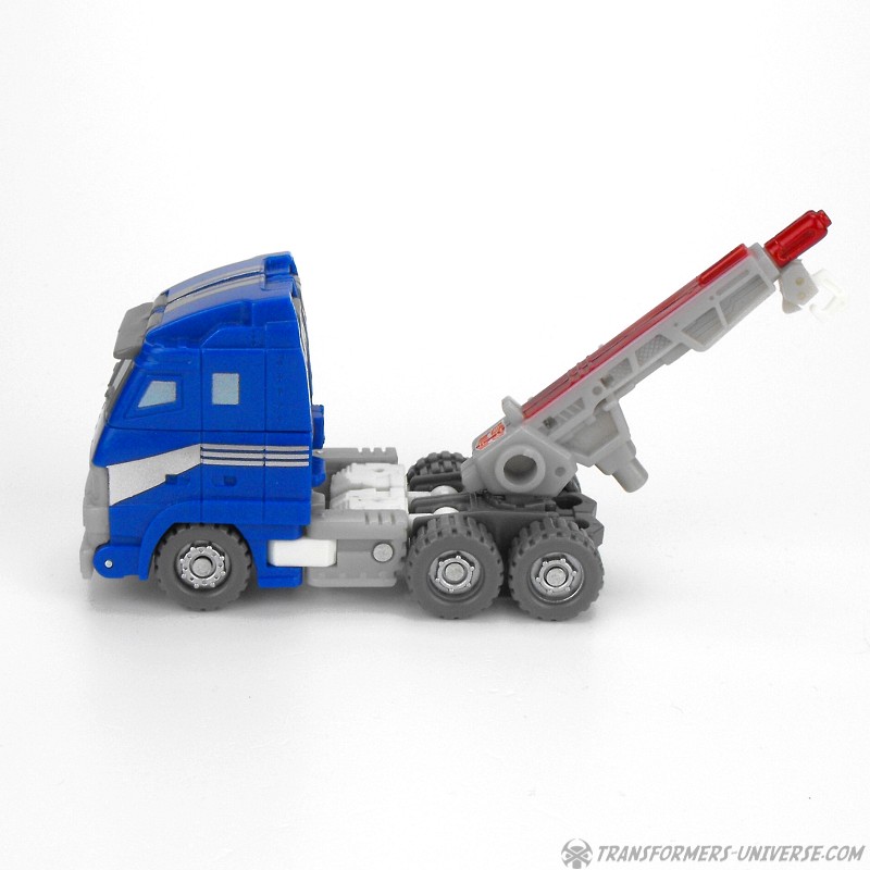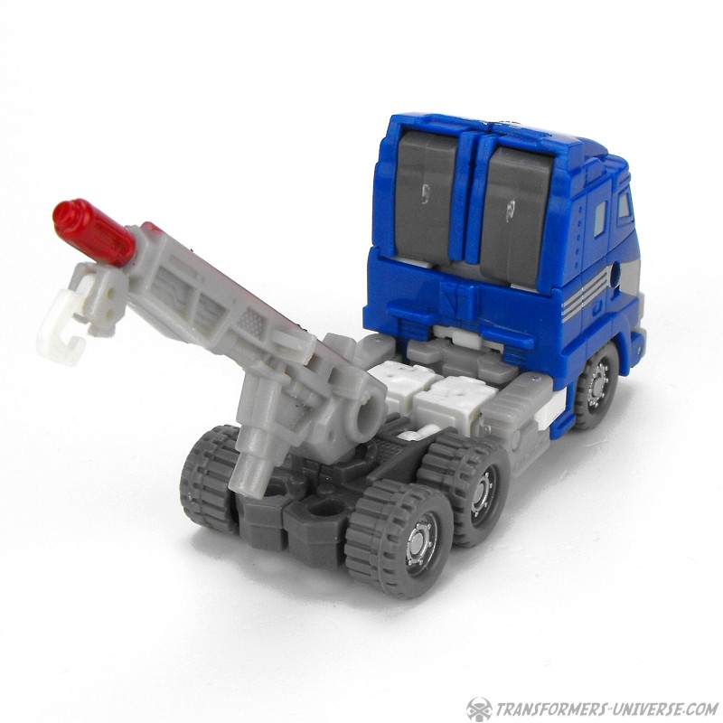 Fahrzeugmodus: Armorhide wird zu einem kleinen blauen Truck mit Abschleppkran hinten drauf. Der Truck sieht so ganz gut aus, wenn auch ein wenig langweilig. An Spielspaß gibt's hier nicht so viel zu entdecken. Der Kran kann sich nicht drehen und muss entfernt werden, will man den Cyberschlüssel in seinen Schacht einführen um den Raketenwerfer zu aktivieren. Unterm Strich ist der Fahrzeugmodus okay, aber nicht mehr als das.