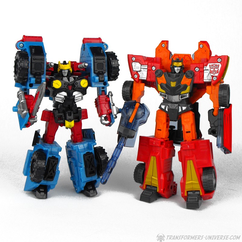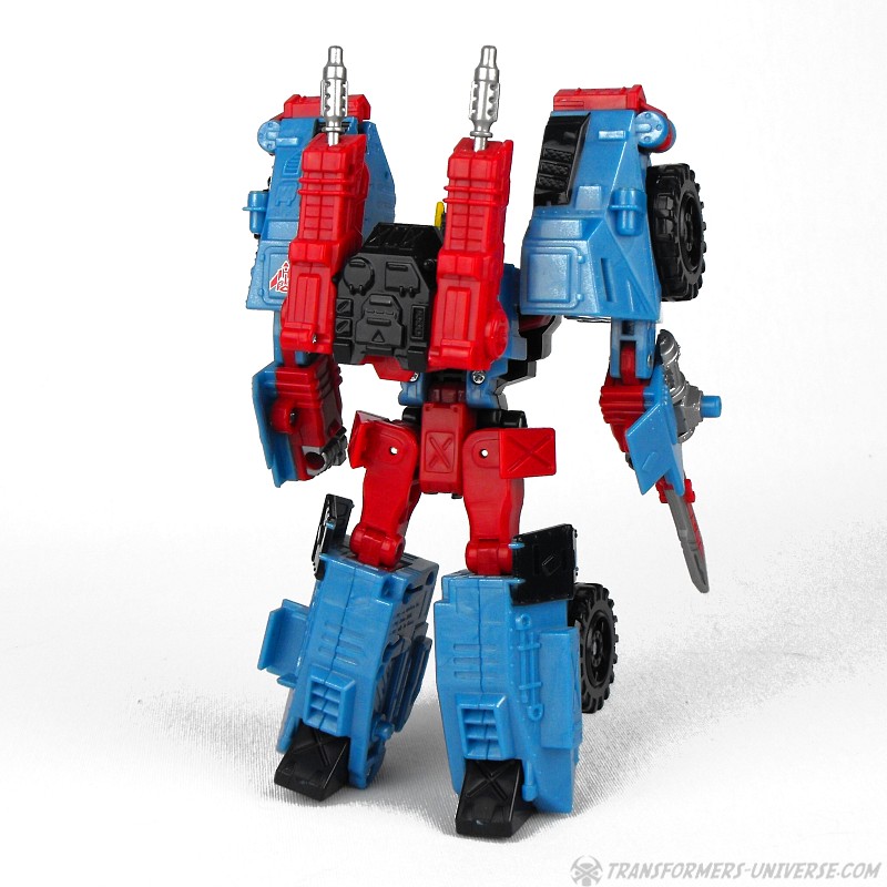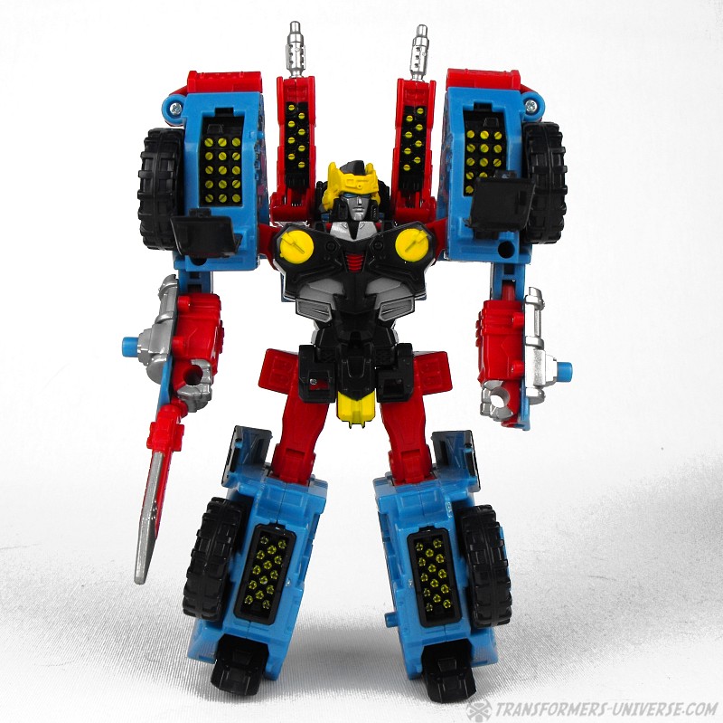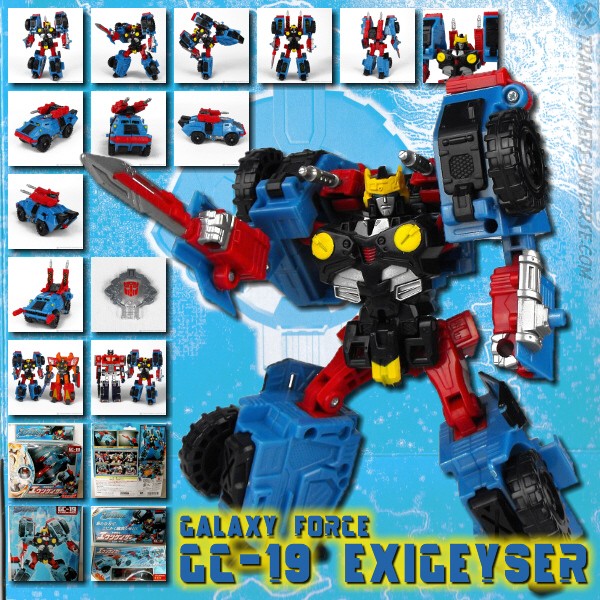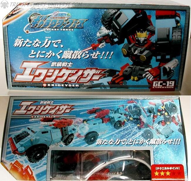 Bemerkungen: Im Laufe der letzten paar Transformers Serien wurde es zum Standard, dass einige Charaktere so auf halber Strecke ein Upgrade erhalten bzw. reformatiert werden und Hot Shot gehörte schon immer dazu. In der Japanischen Galaxy Force Serie erhielt er zum neuen Look auch einen neuen Namen, in Amerika setzte man einfach ein "Defence" vor den alten. Als Figur ist Exigeyser gut, aber irgendwie stört es mich schon, dass er kleiner ist als Hot Shot. Alles in allem aber durchaus empfehlenswert.