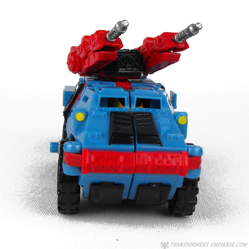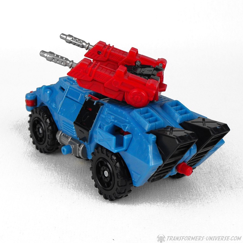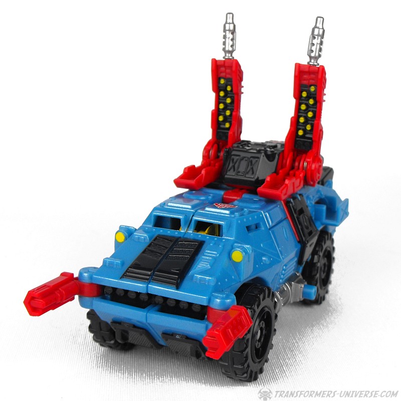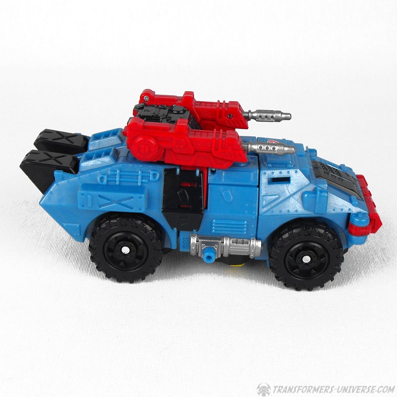 Fahrzeug Modus: Exigeyser verwandelt sich in ein gepanzertes Militärfahrzeug samt Geschützturm (keine Ahnung wie die Dinger genannt werden). Das Fahrzeug als solches ist nichts besonderes, bietet aber einigen Spielspaß. Der Geschützturm ist voll beweglich und auch hier kann mittels Force Chip der Raketenwerfer zum Vorschein gebracht werden. Unterm Strich ein anständiger, wenn auch nicht bemerkenswerter Fahrzeugmodus.
