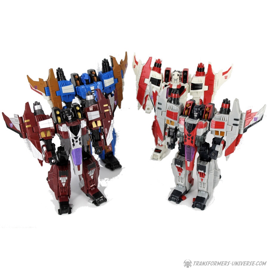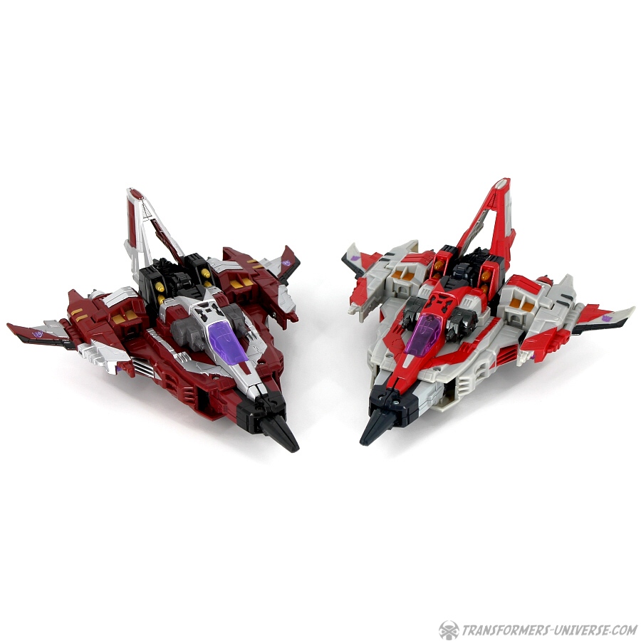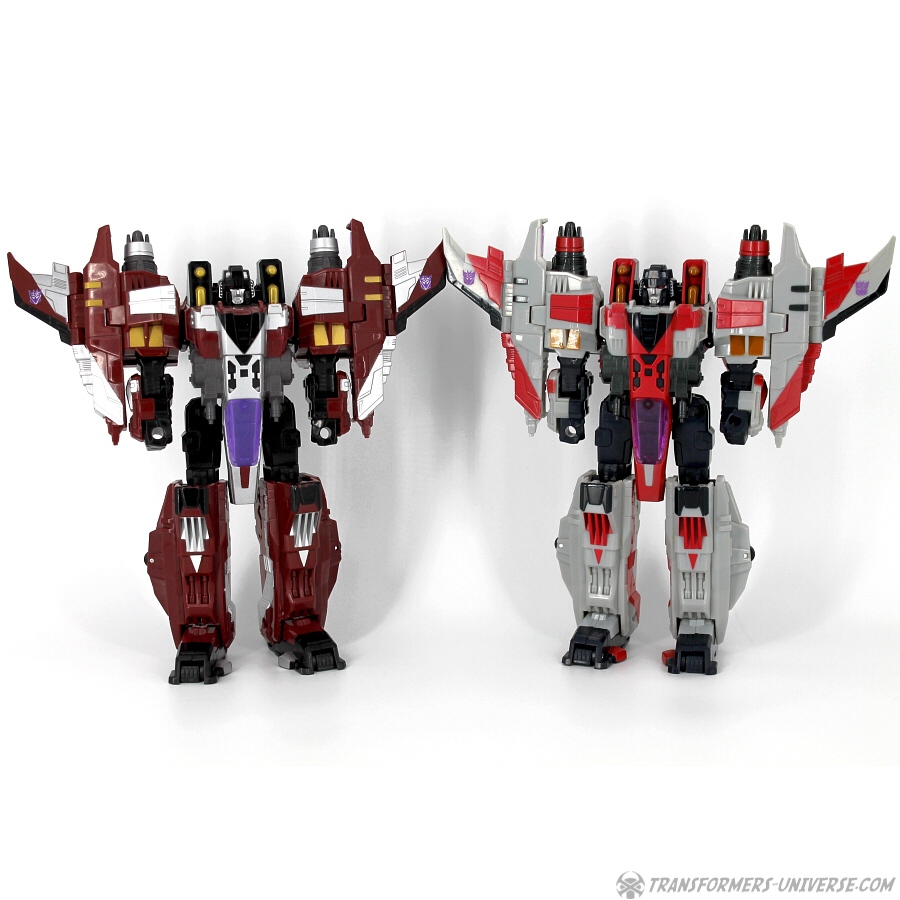 Bemerkungen: Wie ich schon oben geschrieben habe, gab es diese spezielle Version von Starscream nur bei Toys R’Us und auch nur im Doppelpack mit einer unveränderten Vector Prime Figur. Dies war die einzige Möglichkeit an den Voyager Starscream zu kommen, außer ihn aus Japan zu importieren (zumindest bis zur Botcon 2008). Dass man ihm die Thrust Farben gab anstatt ihn wie im Cartoon aussehen zu lassen, dürfte nur ein weiterer Versuch gewesen sein, die Leute zum Kauf des größeren und teureren Supreme-Klasse Starscream zu bewegen.