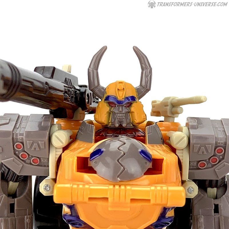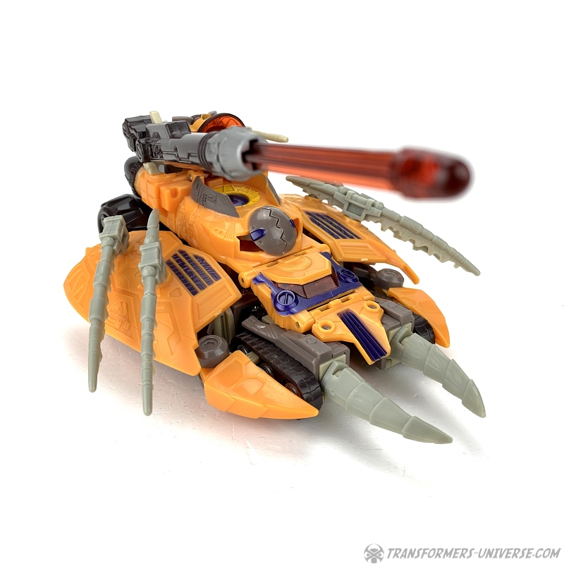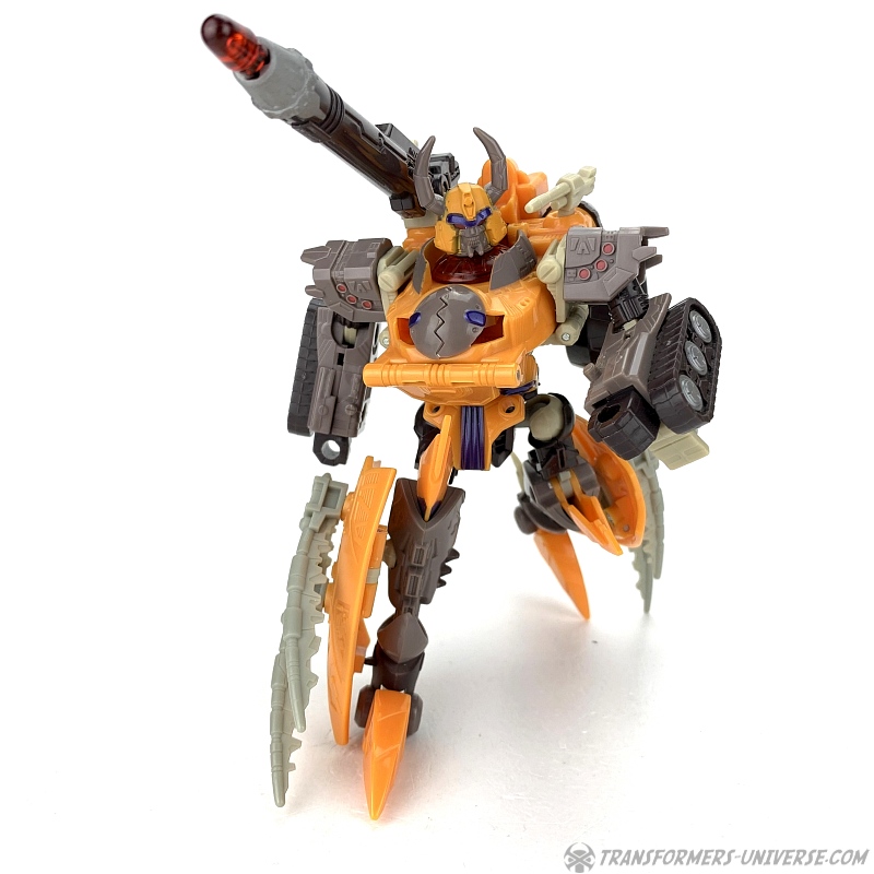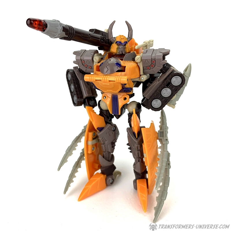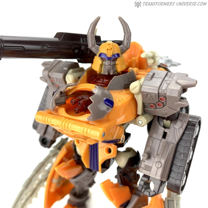 Viele Transformer werfen immer noch abergläubisch eine Handvoll Energon Münzen über die Schulter wenn sein Name ausgesprochen wird, denn er bedeutet Chaos und Zerstörung. Der einst allmächtige Planetenverschlinger wurde vor Jahrzehnten von den Autobots vernichtet. Viel zu lange war er in den rostenden ýberresten seines alten Körpers gefangen. Nun ist er als unaufhaltbarer Vernichtungspanzer reinkarniert. Noch hat er nicht seine alte Macht wiedererlangt, aber schon bald wird das ganze Universum seinen Namen kennen und erzittern.