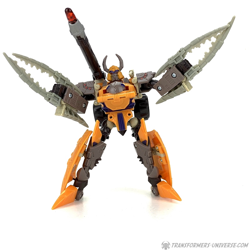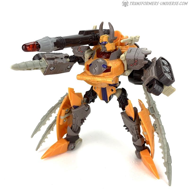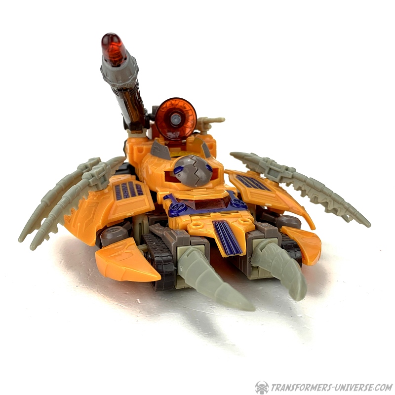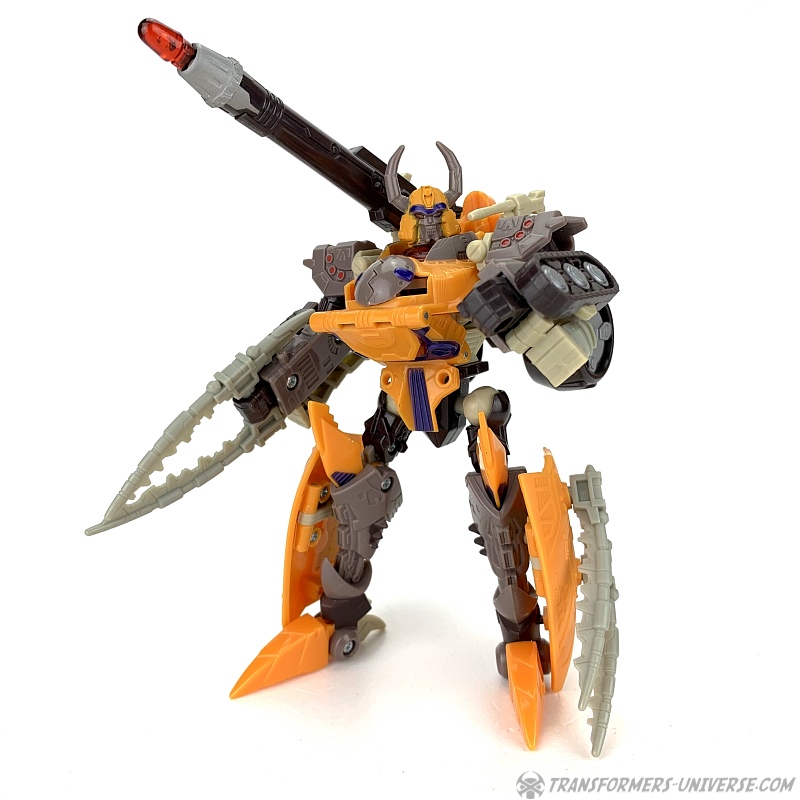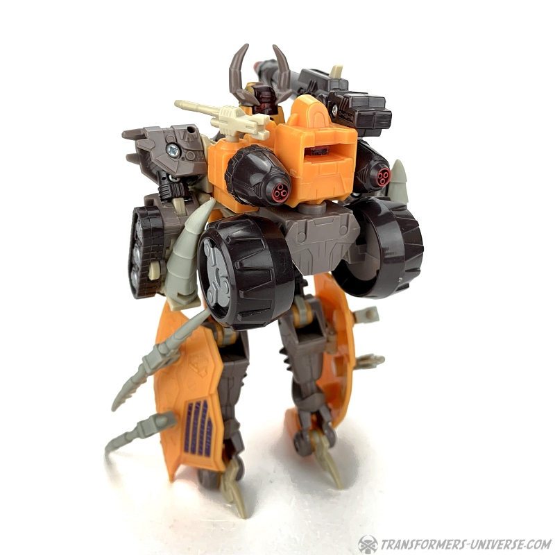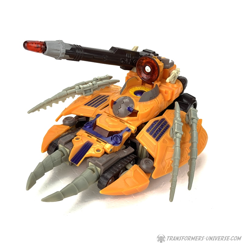 Viele Transformer werfen immer noch abergläubisch eine Handvoll Energon Münzen über die Schulter wenn sein Name ausgesprochen wird, denn er bedeutet Chaos und Zerstörung. Der einst allmächtige Planetenverschlinger wurde vor Jahrzehnten von den Autobots vernichtet. Viel zu lange war er in den rostenden ýberresten seines alten Körpers gefangen. Nun ist er als unaufhaltbarer Vernichtungspanzer reinkarniert. Noch hat er nicht seine alte Macht wiedererlangt, aber schon bald wird das ganze Universum seinen Namen kennen und erzittern.