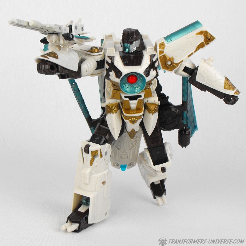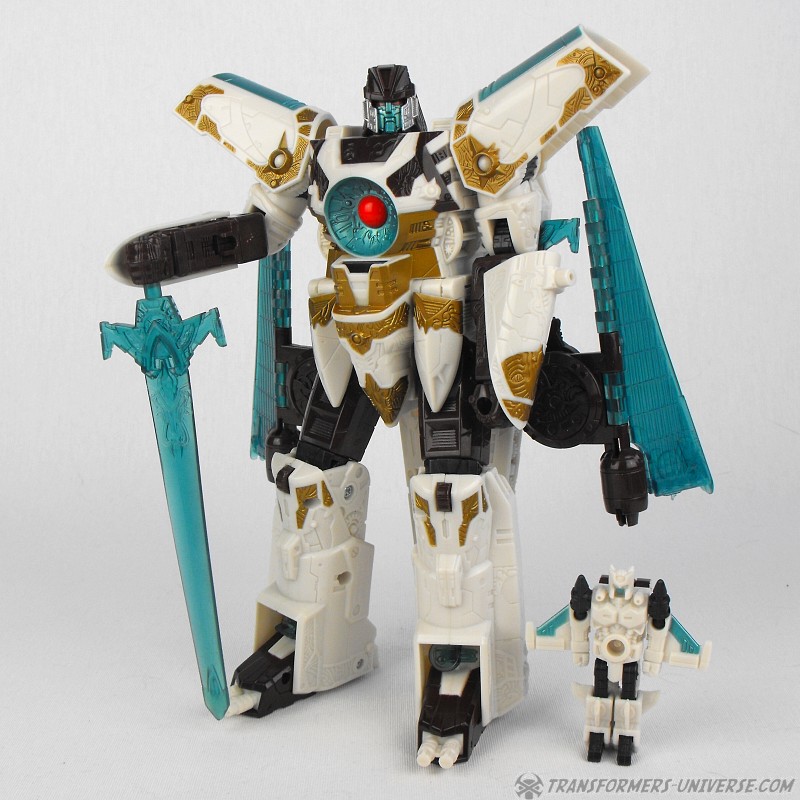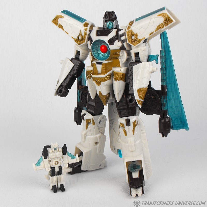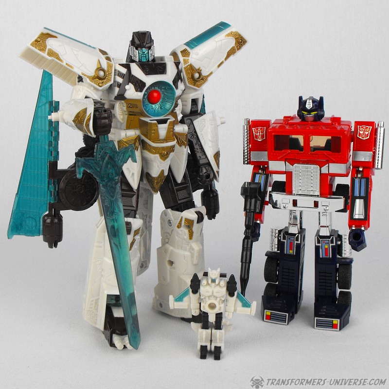 Bemerkungen: Vector Prime (und Safeguard) bringen die Anzahl meiner Transformers auf 222, also ein kleiner Bonus dafür. Diese Figur hat eine Menge Diskussion im Internet ausgelöst, genauer gesagt Hasbros Entscheidung, die Detaillierung des Galaxy Force Originals durch seine weiße Farbe abzuschwächen. Obwohl ich zugebe, dass dies Vector Prime etwas runterzieht, halte ich ihn keineswegs für eine schlechte Figur und seine wenigen Schwächen sind leicht zu übersehen. Als einer der primären Charaktere des Cartoons ist Vector Prime ein klares Muß für alle Transformers Fans.