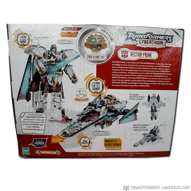 Partner / Zubehör: Safeguard, ein Minicon, dient als Vector Primes Partner. Er verwandelt sich von einem recht beweglichen Minicon in eine Mischung aus Waffe und Jet. Safeguard ist mit Sicherheit einer der interessanteren Minicons aus den Armada/Energon/Cybertron Serien.
