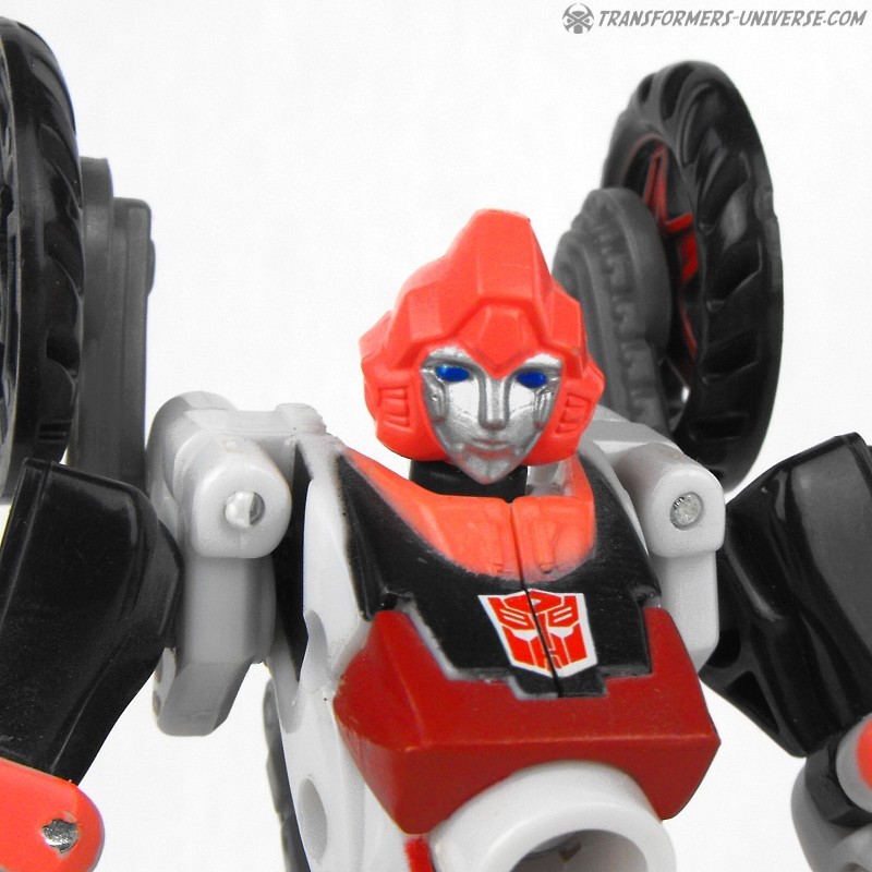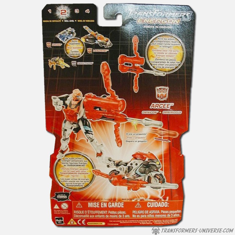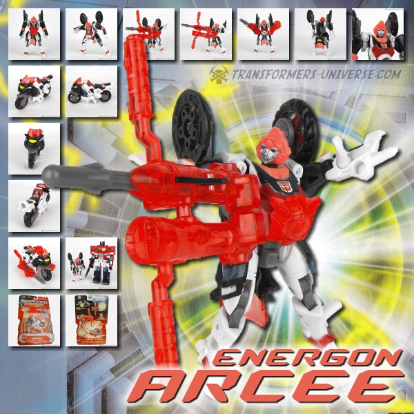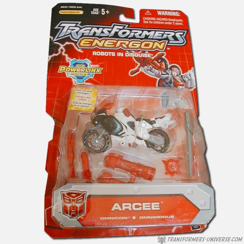 Arcee ist ein schneller und resoluter Omnicon. Sie ist eine engagierte Kriegerin die mehr als einmal bewiesen hat, dass sie mit den Besten unter ihren Autobot Kameraden mithalten kann. Ihr Geschick mit dem Energon Bogen ist unerreicht. Als Fahrzeug wird Arcee zu einem superschnellen Sport-Motorrad und kann jeden abhängen, der sie herausfordert. Ihre Loyalität zur Sache der Autobots ist unbestritten, was sie zu einem von Optimus Primes besten Kriegern macht.