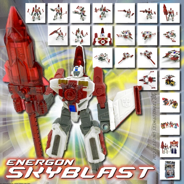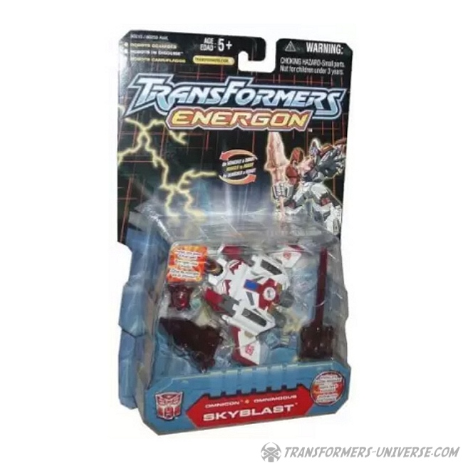 Bemerkungen: Skyblast ist ein Omnicon, einer jener Autobots, die speziell für die Verarbeitung von rohem Energon gebaut wurden und es zu Energon Waffen für die Autobots schmieden können. Er kam auch in der TV Serie vor, allerdings mehr in einer Hintergrundrolle.