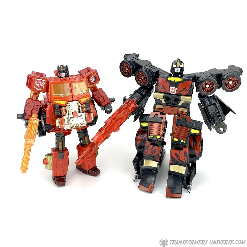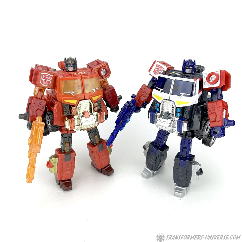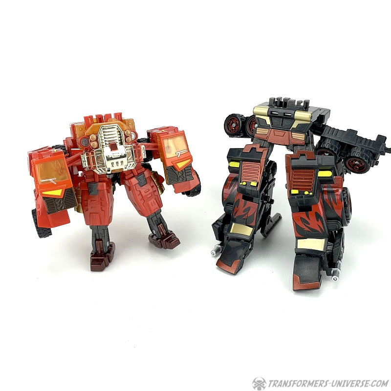 Bemerkungen: Als Optimus Prime im Energon/Superlink Cartoon und der Figurenreihe auftauchte, wurde sein neues Design von vielen Fans eher kritisch bewertet. Und wo die größere Optimus Figur zumindest noch ein paar coole Powerlinx Optionen mit seinen Drohnen, Wing Saber und Omega Supreme aufweist, kann diese kleinere hier … nun ja, sie kann Powerlinken, aber keine Ahnung, warum man das wollen sollte. Diese rote Version von Grand Convoy war ein limitiertes Exklusivstück, genau wie Black Rodimus. Nun ist Black Rodimus ein sehr schönes Repaint und sieht toll aus. Grand Convoy Fire hingegen… sagen wir mal so: ich habe mir die Hasbro Version dieser Figur nur geholt, weil sie im Doppelpack mit Megatron war. Und der einzige Grund sich diese hier zu holen ist, wenn man auf seltene Exklusivfiguren steht.