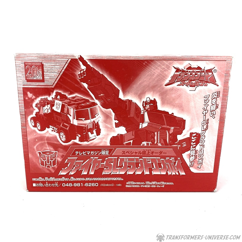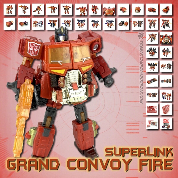 Vorwort: Wer erinnert sich noch, als Energon Optimus Prime einen Zwei-Bot Powerlink machte und dabei in Flammen stand? Niemand? Nun, dann habt ihr wohl die spezielle japanische TV Magazin Edition von Superlink Grand Convoy vergessen, die auf 3.000 Stück limitiert war, oder? Und sowas nennt sich Transformers Fan? Macht erstmal Eure Hausaufgaben bezüglich kaum bekannten Takara Exklusives, okay? Bis dahin, hier haben wir Superlink Grand Convoy Fire, bereit zu entflammen. Los geht’s!