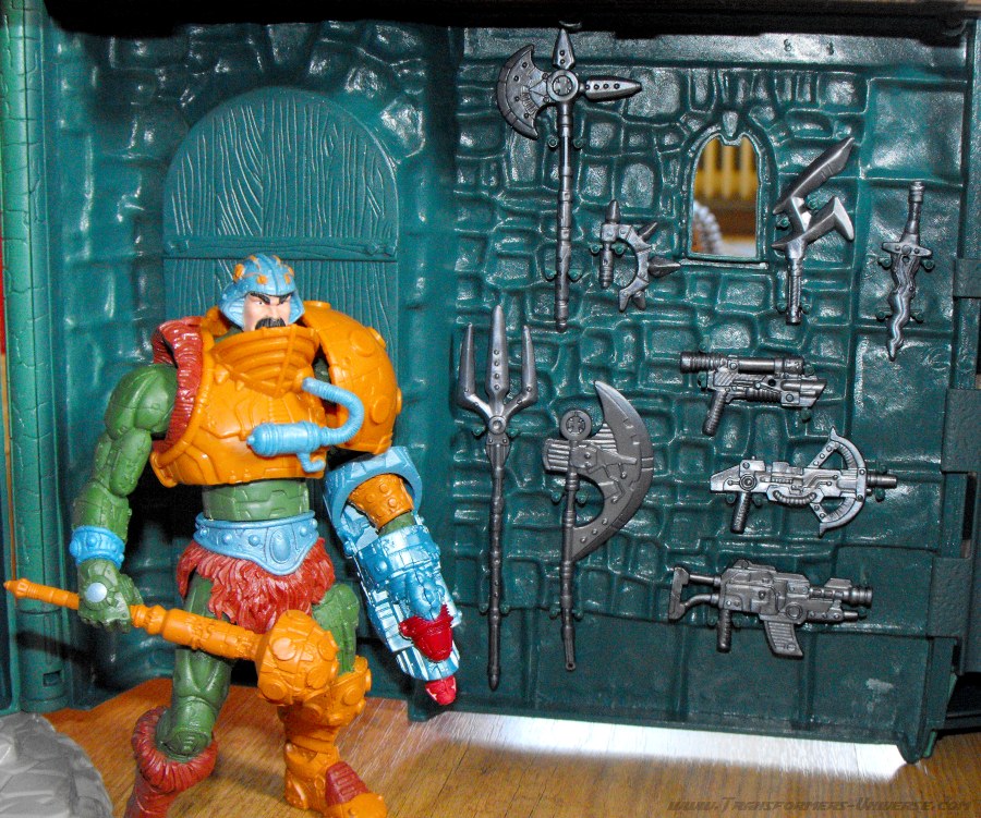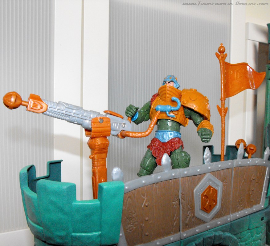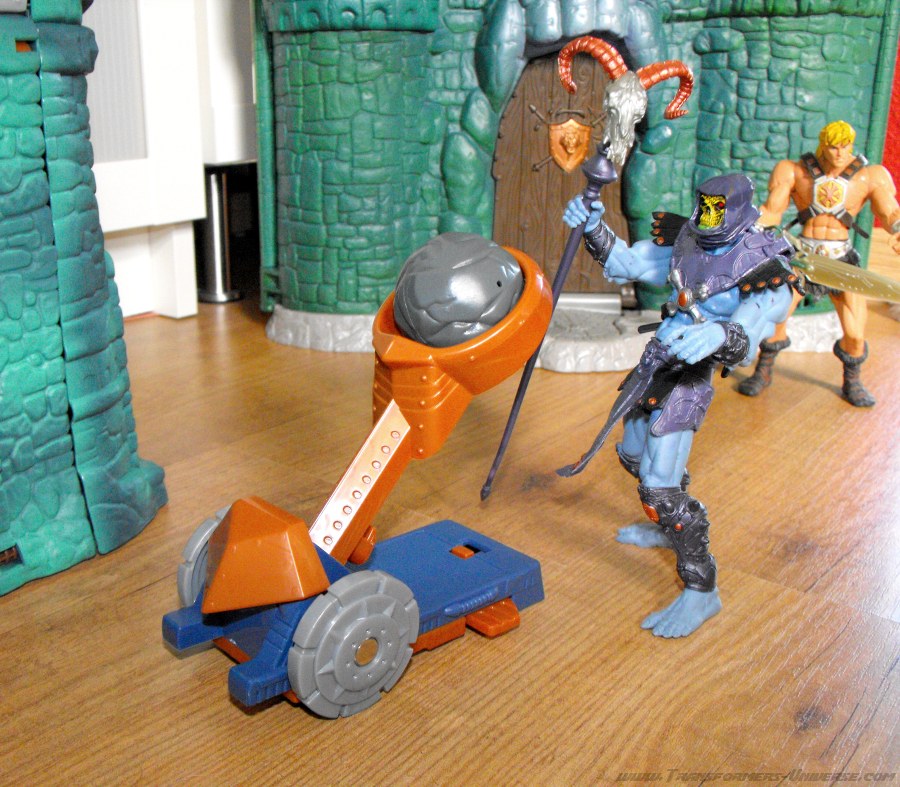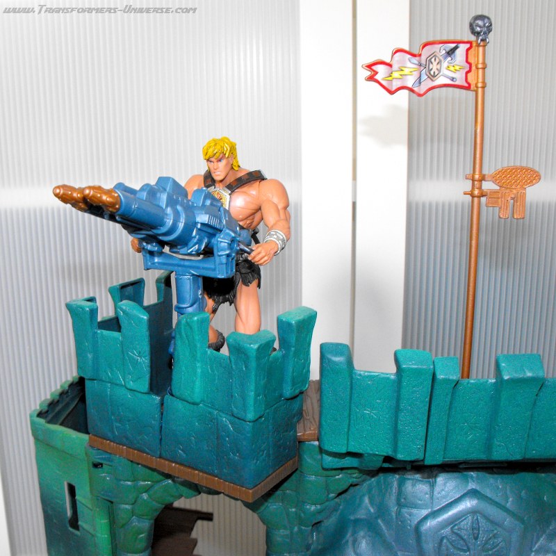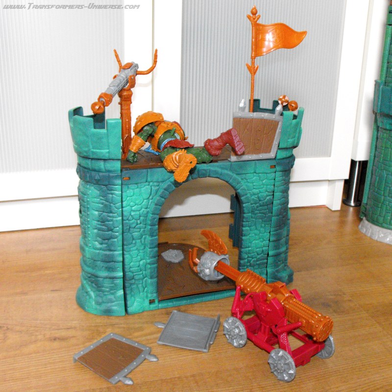 The Battle Station playset came out a year later and is basically meant as an attachment to Grayskull. It features another missile launcher on top, as well as a battering ram and a catapult that can "shatter" the gate.