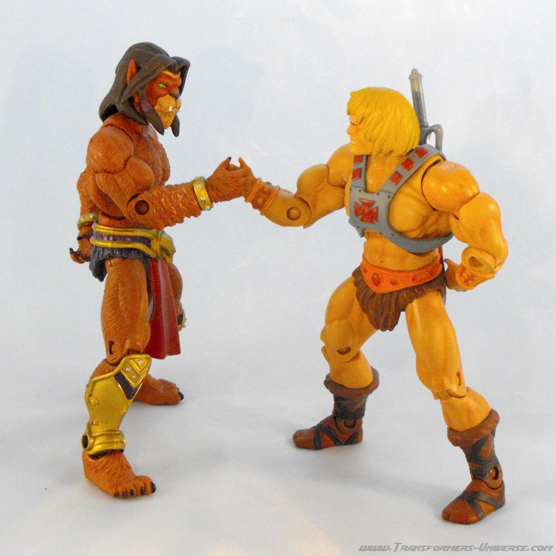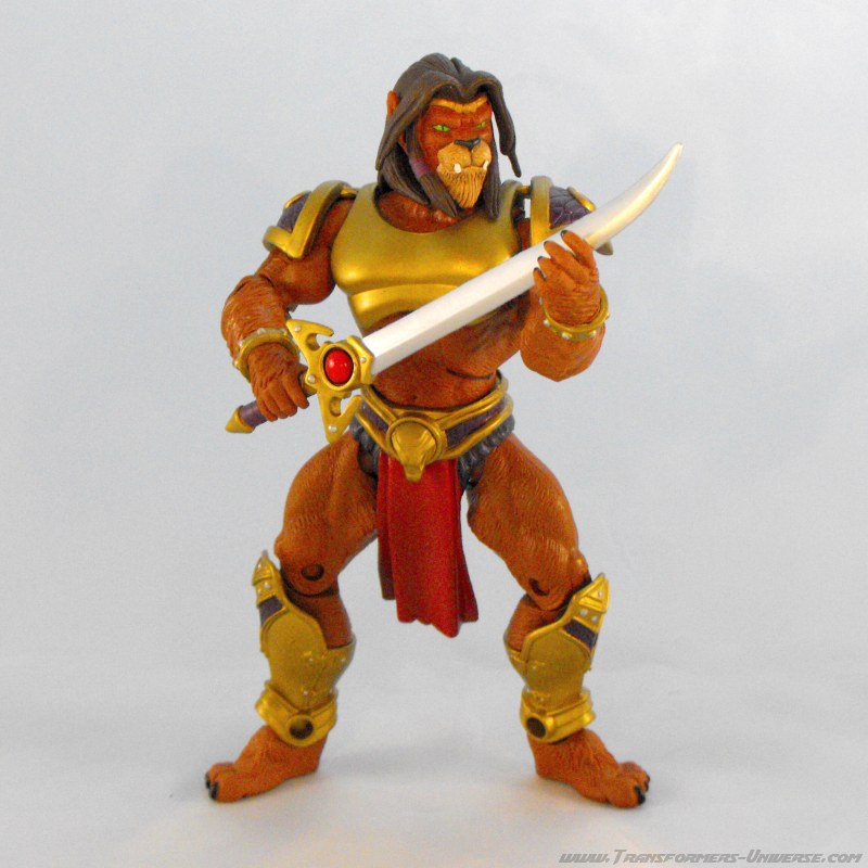Overall a very nice figure, though some people might be put off because he is not one of the original vintage characters. Me, I'm very much reminded of Thun, the Lion Man from Flash Gordon, which is just one more reason to love this guy. Even if you're not a Flash Gordon fan, though, what's not to love about a humanoid cat person with a big sword and cape?