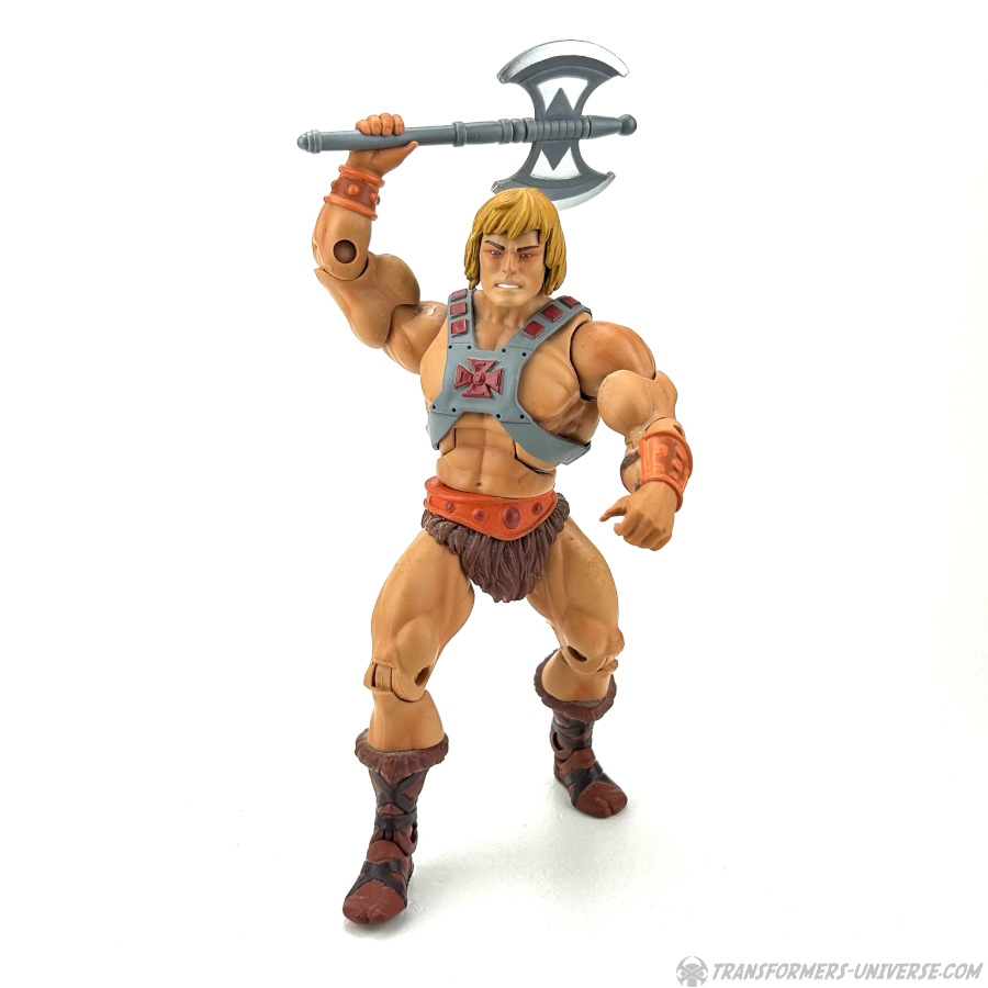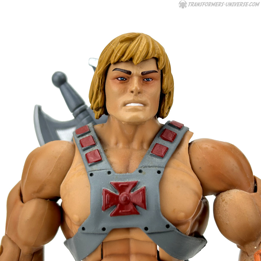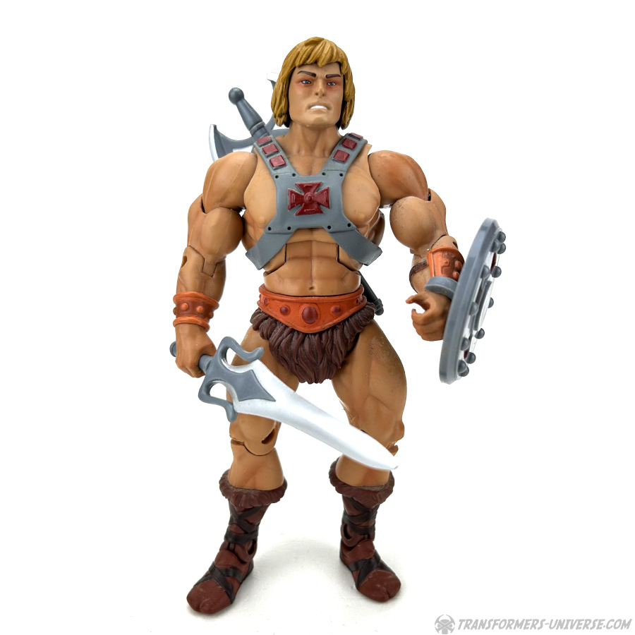 Enter a new He-Man figure, bigger than all the ones who came before him, more detailed, better articulated, and just plain-cool. Much like the Transformers from those days, the goal wasn't to faithfully recreate the look from the old cartoon, but rather to update the classic look with a more modern design. Overall I'd call this a success, though I have to ask what this He-Man here went through that gave him such bags under his eyes. Apart from that, though, he is cool. He's got the chest harness, the shield, the ax, the power sword, everything. Just a very cool He-Man figure for the adult collector. What more can you want?