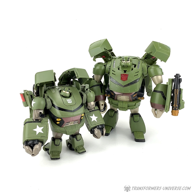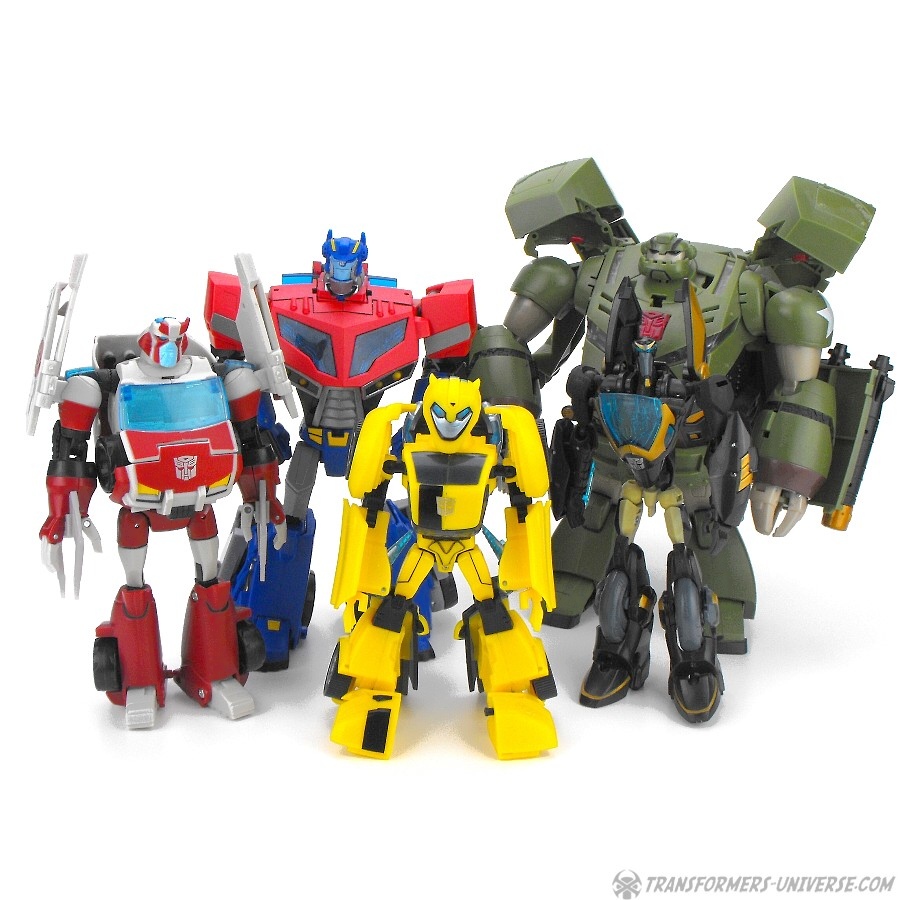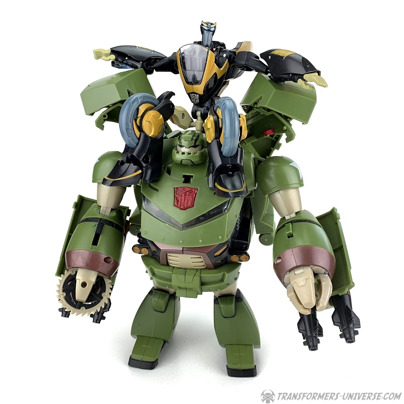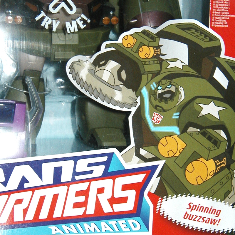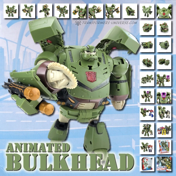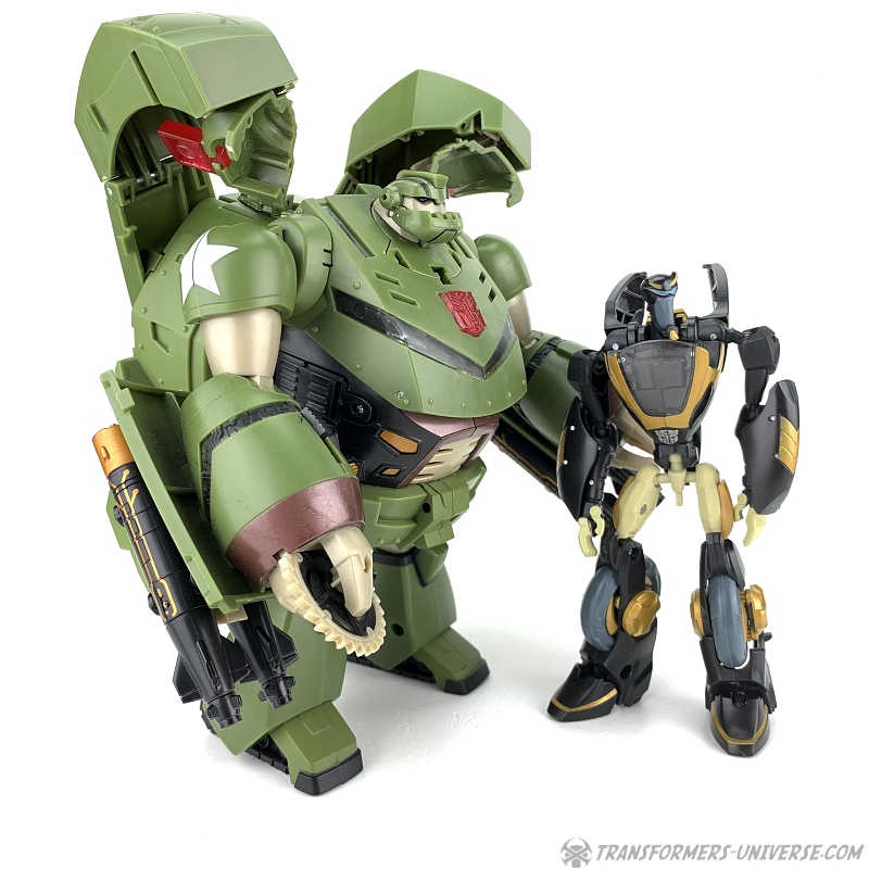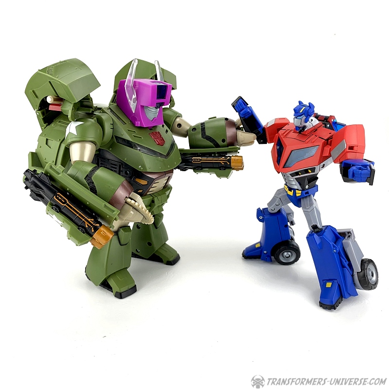As a figure Leader-class Bulkhead has his good sides and his bad ones. In terms of scale he's much more compatible with the other Animated figures than the Voyager version, but he does lose some points in terms of gimmicks and some details. The best Bulkhead would probably be a fusion between the two versions, but if I were forced to choose, I guess the Leader-class version would win by a very tiny margin, mostly because I like to have my various figures in scale to each other if at all possible. Still, considering that most of Bulkhead's problems could easily have been avoided, I can't award him more than a good B.