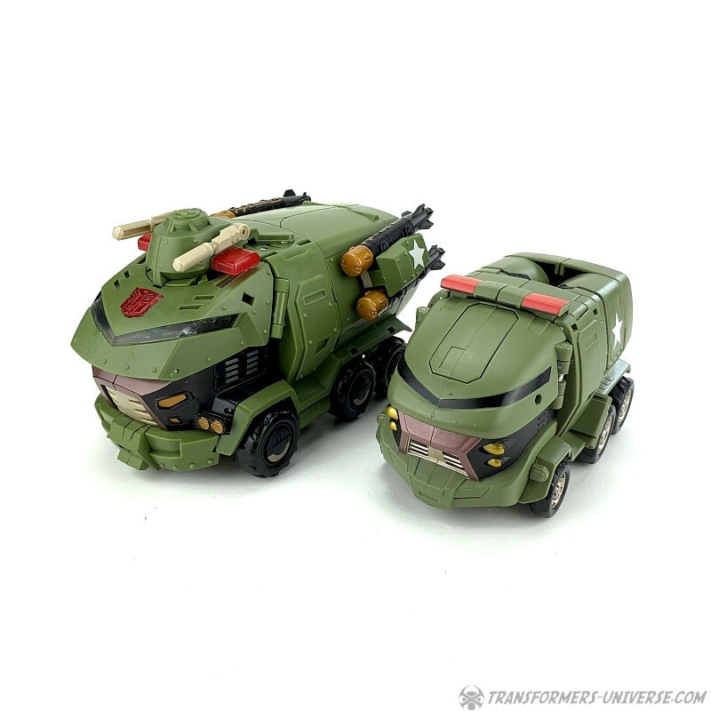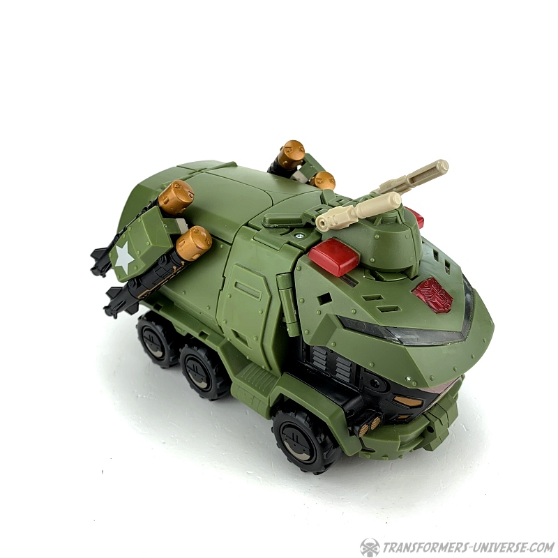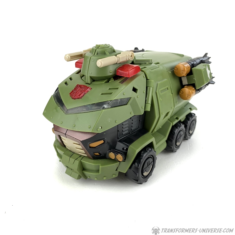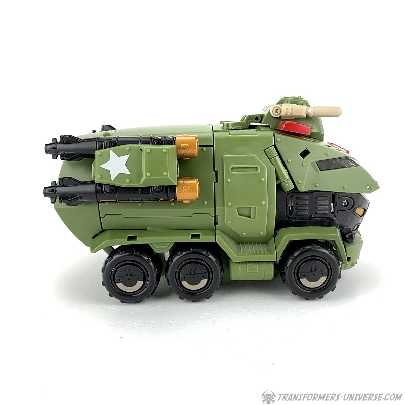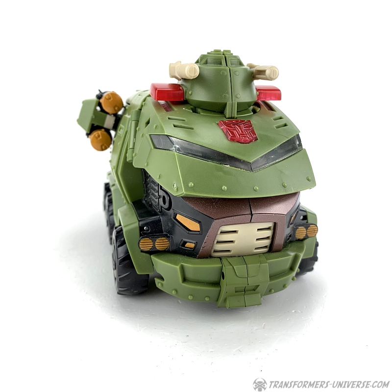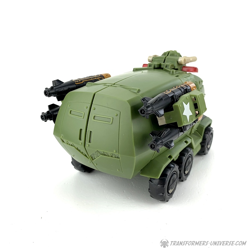 The same problem present in the robot mode persists here. The missile launchers are now on the sides of the vehicle and while they do look good there and can even be turned to fire upwards or backwards, I once again wonder what they're doing here in the first place. Bulkhead's vehicle mode in the cartoon doesn't feature any armaments.