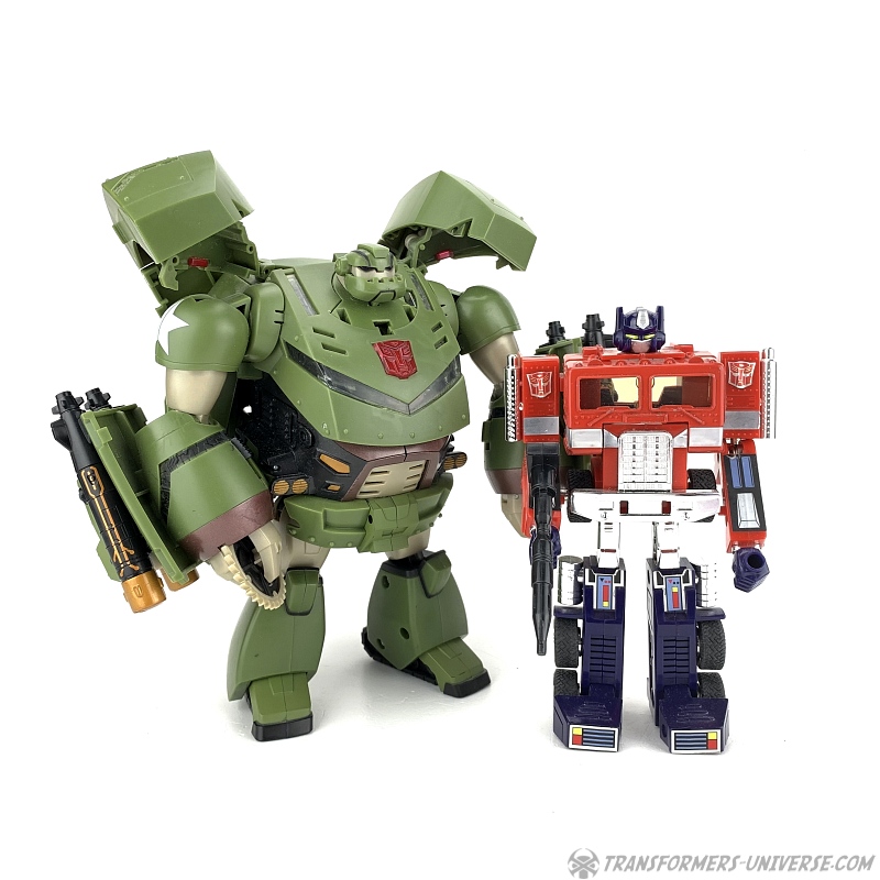 Robot Mode: The first thing one notices about Bulkhead's robot mode is that it's big. And seeing as that was the main problem of the Voyager version of this character, that's a pretty good start. As a Leader-class figure Bulkhead is still not as big as he should be in comparison to the Deluxe-class figures, but at least he now does tower over them by a significant margin. So one problem solved.