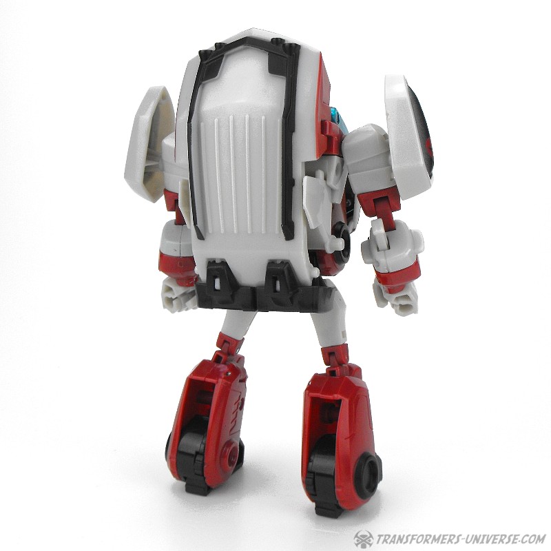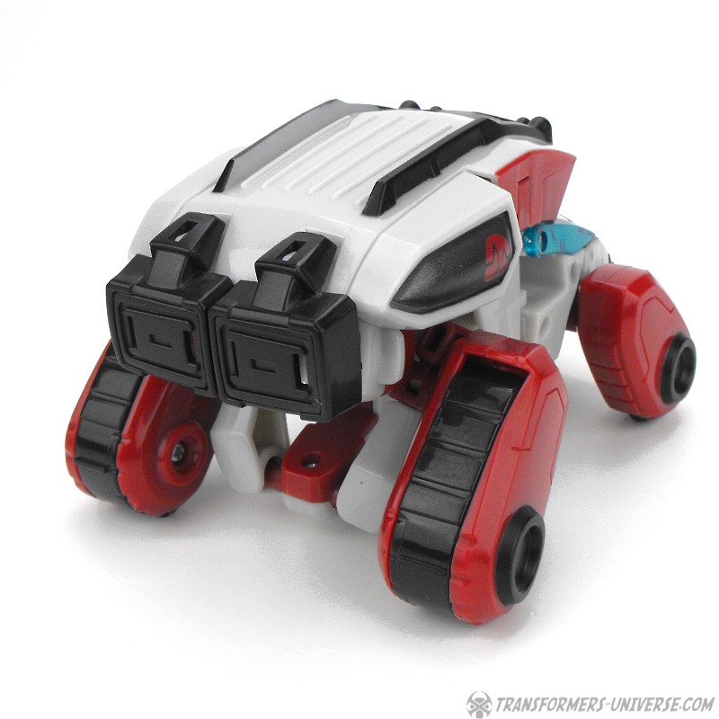 It is possible to tell that he transforms into something based on his shell and front vehicle limbs, but as stated above his alt mode isn’t a disguise. He has little in the way of useless kibble, because the shell doesn’t really interfere with the limbs and does not appear to be a robot with a vehicle on his back. It does however make him look like a white ninja turtle.