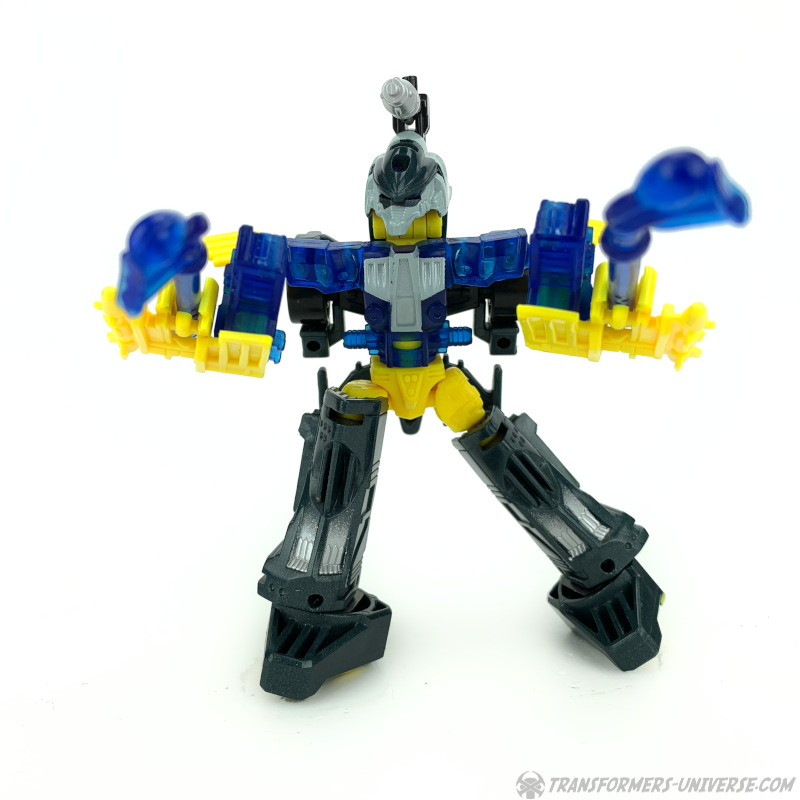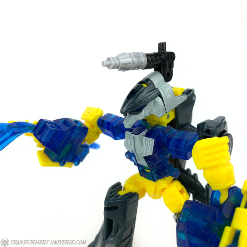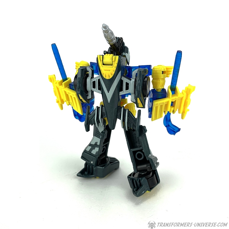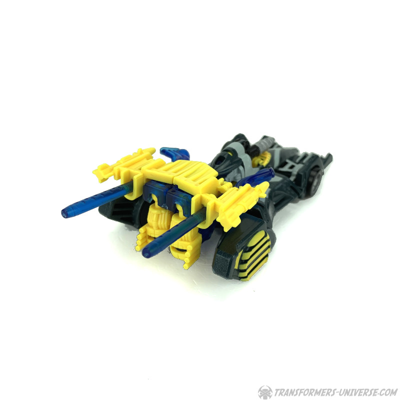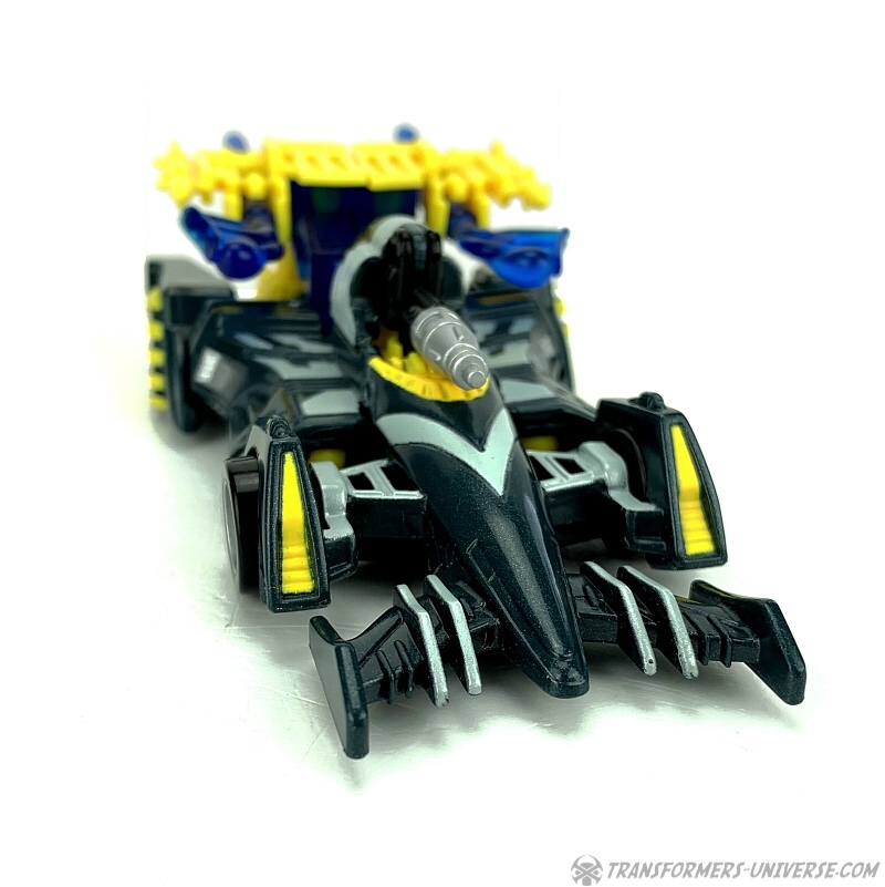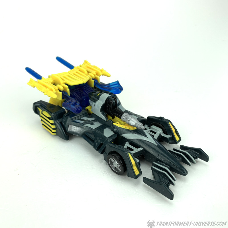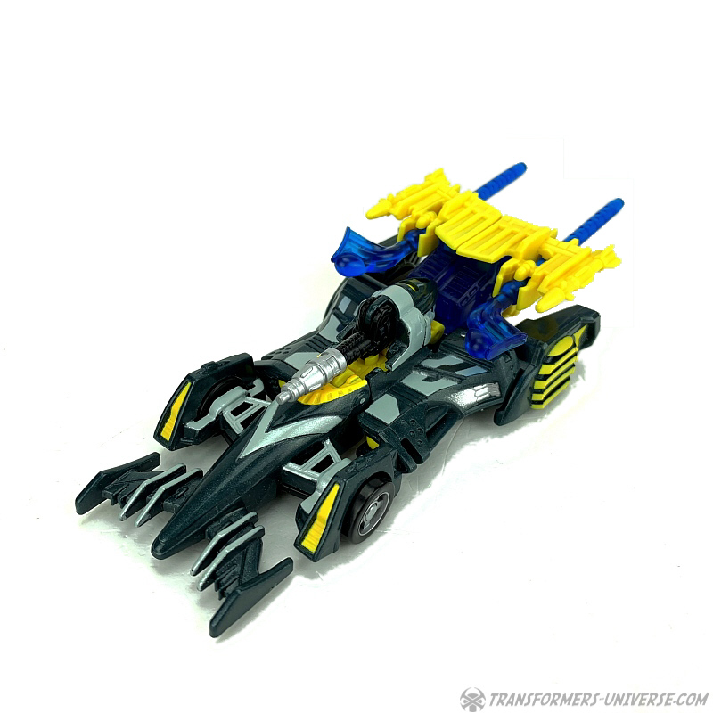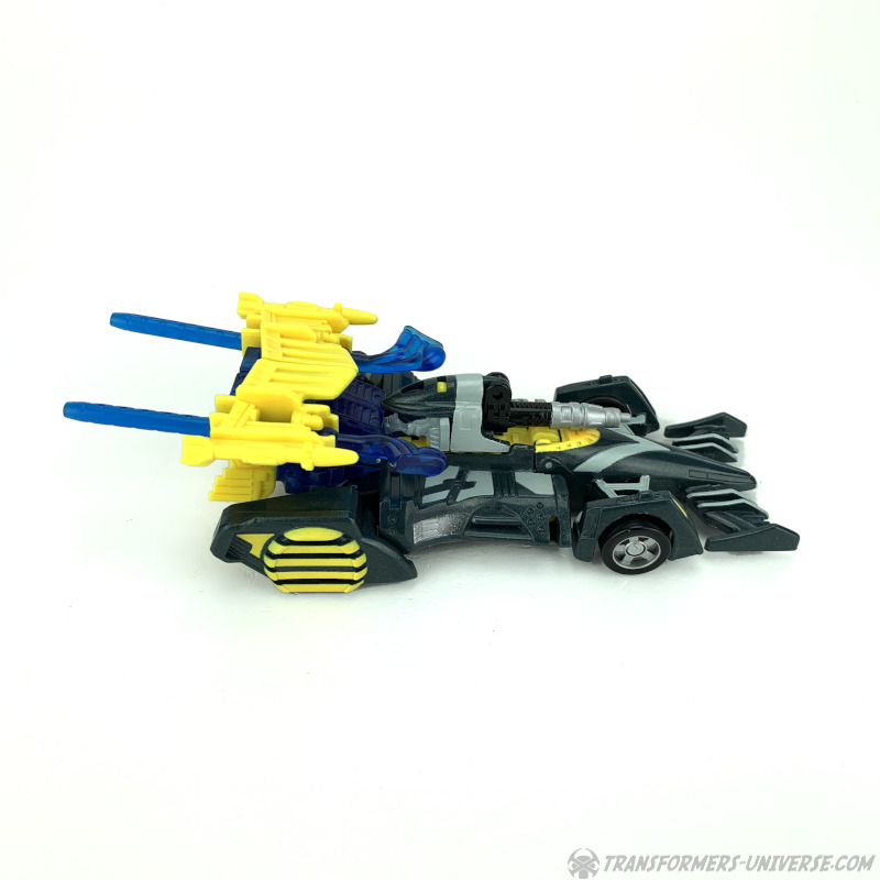 Alternate Mode: Much like his G1 predecessor Mirage transforms into a sleek F1 racer. The vehicle looks mostly realistic with some futuristic elements such as the laser cannon jutting out from the cockpit or the blue missiles on the spoiler. The vehicle mode is the better one of Mirage's two mode by a bit.