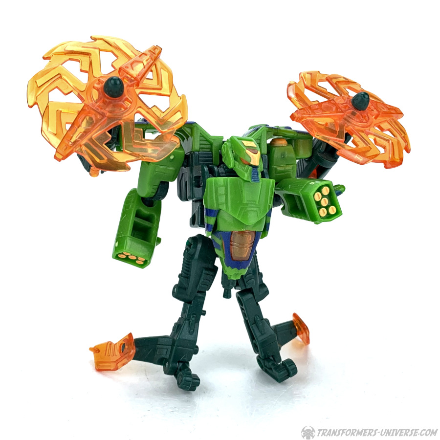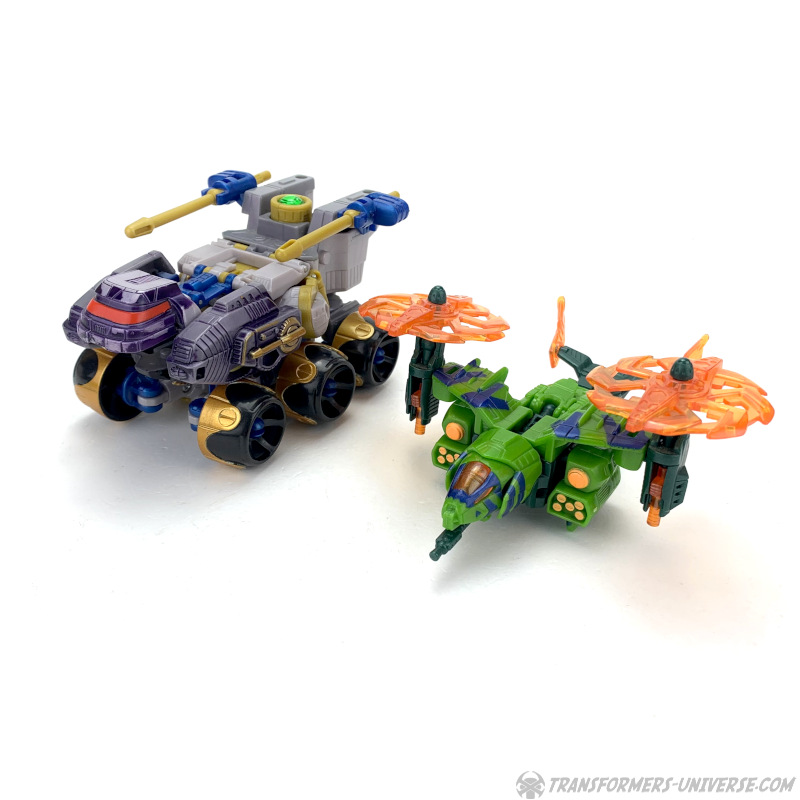 Remarks: When Megatron realized that recycling Beast Wars characters for his Vehicon generals wasn't cutting it, he used the sparks of "the greatest generals in Cybertronian history", Strika and Obsidian. Now it was never quite clear how they earned that title and in what "thousands wars" they fought and won together (seeing as the last Cybertronian war covered more than 9 million years), but whatever. Strika and Obsidian fought hard against the Maximals before being shot into space, never to be seen again on TV.