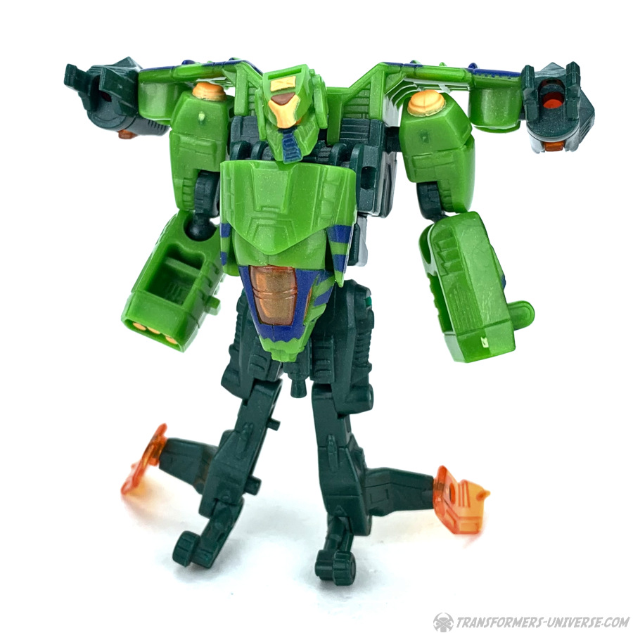 Like with most Vehicon vehicle modes, the 'head' of the vehicle (the cockpit) is given face-like features and can move sideways a bit, simulating the articulate, living nature of the Vehicon vehicle modes we've seen in the TV series. So all in all this vehicle here looks armed, dangerous, and pretty good, too. Nothing to complain about expect maybe a lack of aerodynamics in this form, but given that this is an alien vehicle, one can easily overlook that.