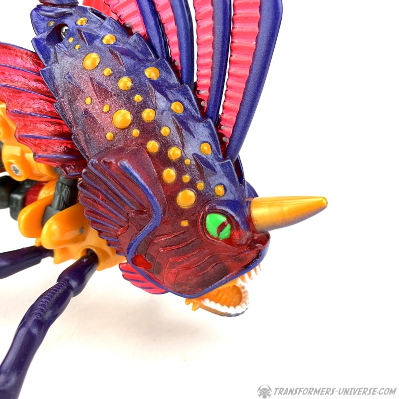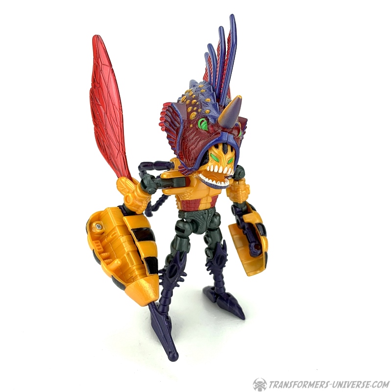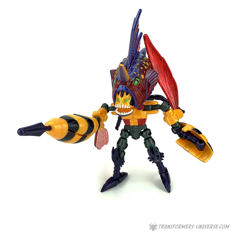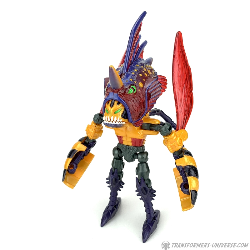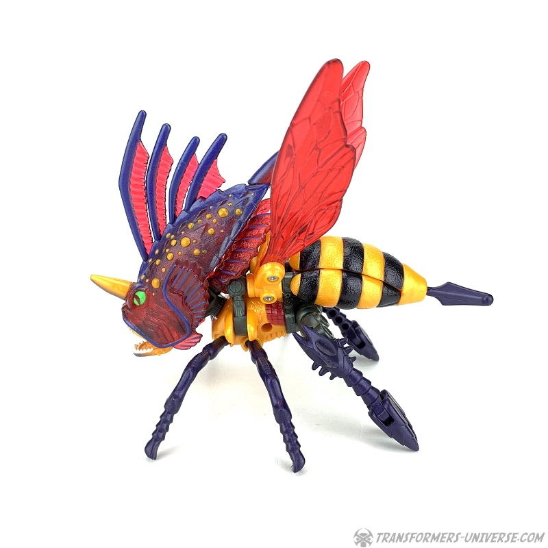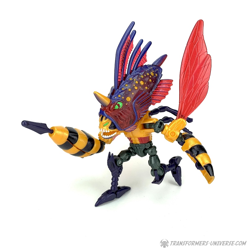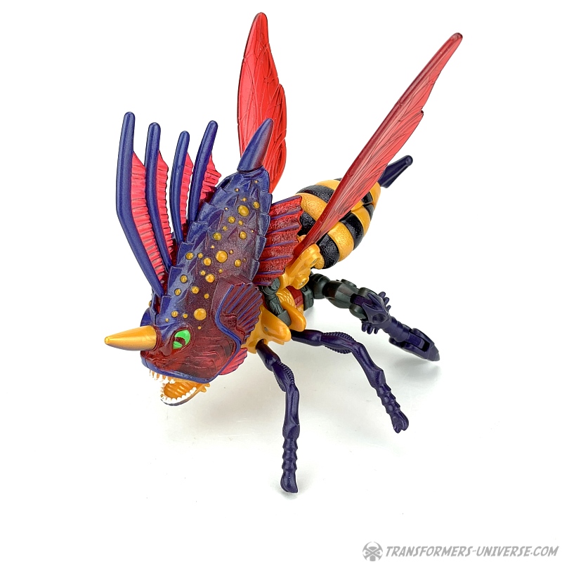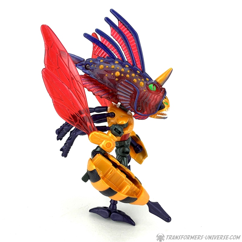 Alternate Mode: Being a Fuzor (or Blentron), Rartorata’s beast mode is a fusion of two different animals. The head is that of a lionfish, the body is a hornet. One has to wonder where exactly Rartorata happened to scan this weird combination of animals for his beast mode. Anyway, the result is, just like the robot mode, bizarre. A hornet with the head of a lionfish. That pretty much describes it, I think.