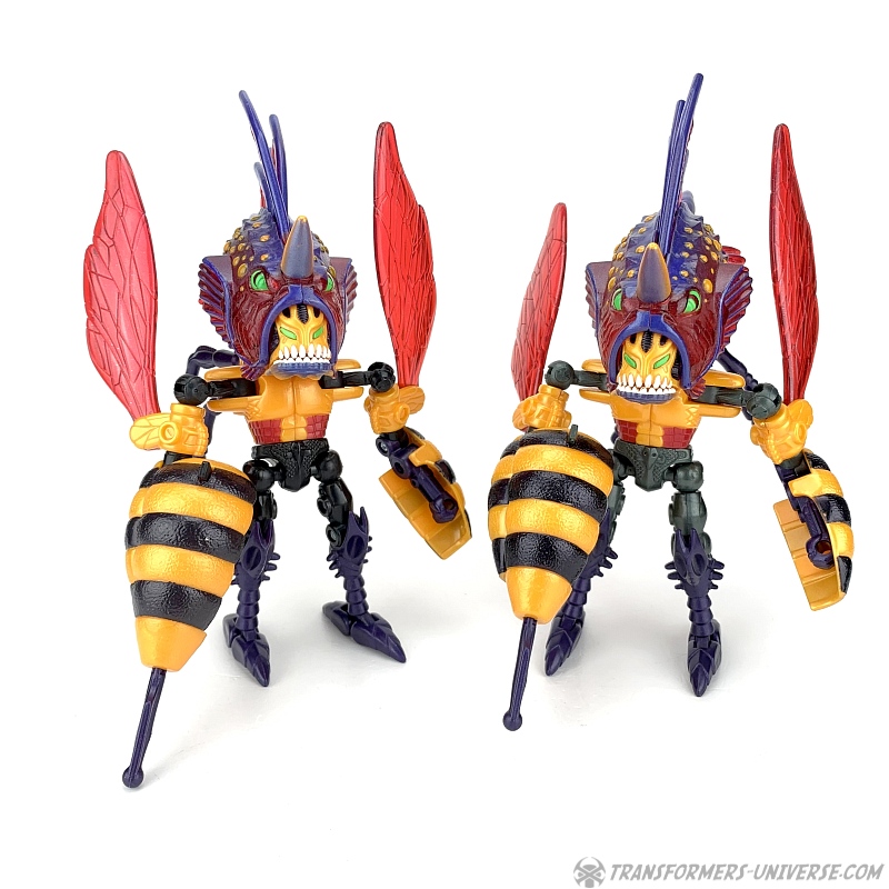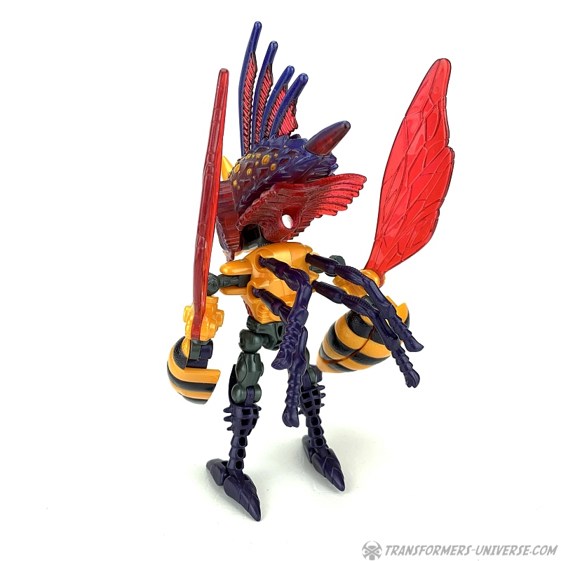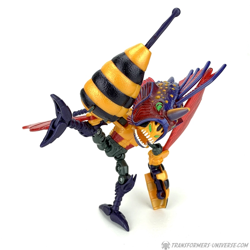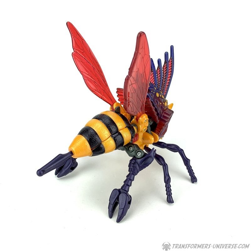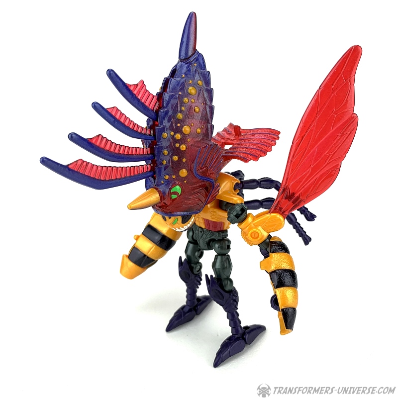 The wings are articulated due to ball joints, as are the six legs. The missile launcher becomes the stinger on the hornet’s rear end and the gimmick with the head fins works in this mode as well, of course. Not much more I can write here that the pictures don’t tell better. A very weird beast mode for certain, but oddly beautiful.