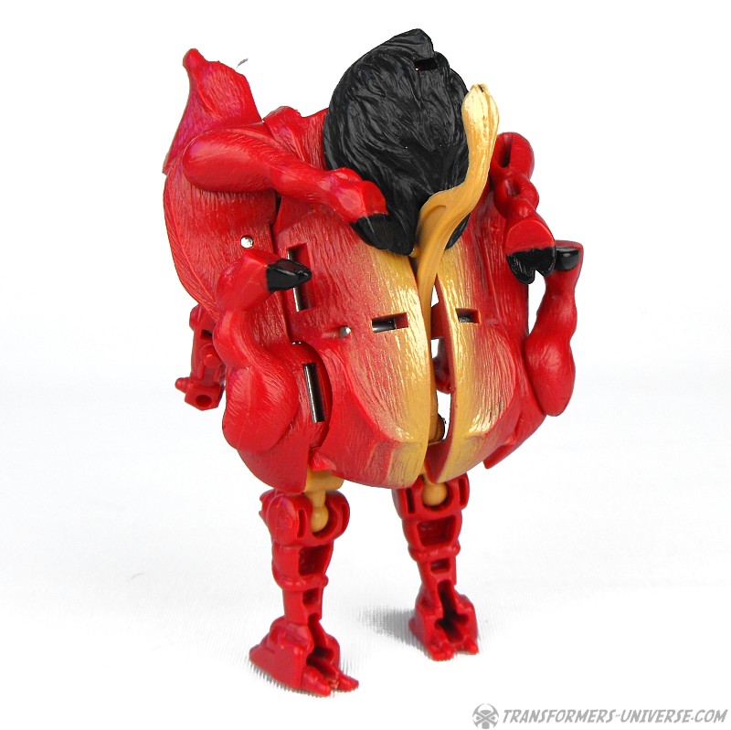 Robot Mode: Razorbeast is the typical Beast Wars basic robot. An animal shell on his back, the animal head on his chest, a very posable robot with ball-joints. His weapon emerges from the mane of his beast mode. His detailing is average and he's an all-around average figure. Not bad, not terribly good, just average.