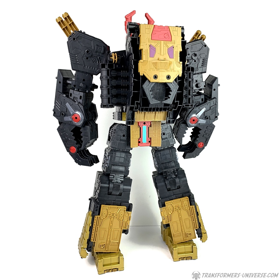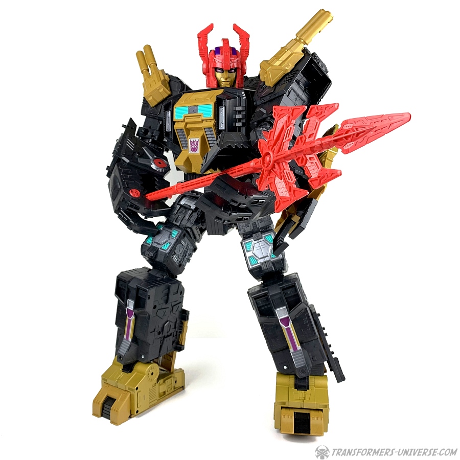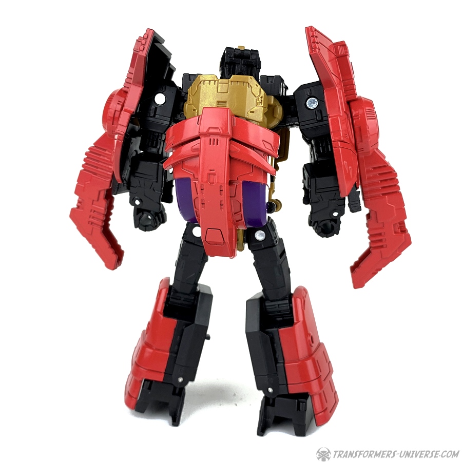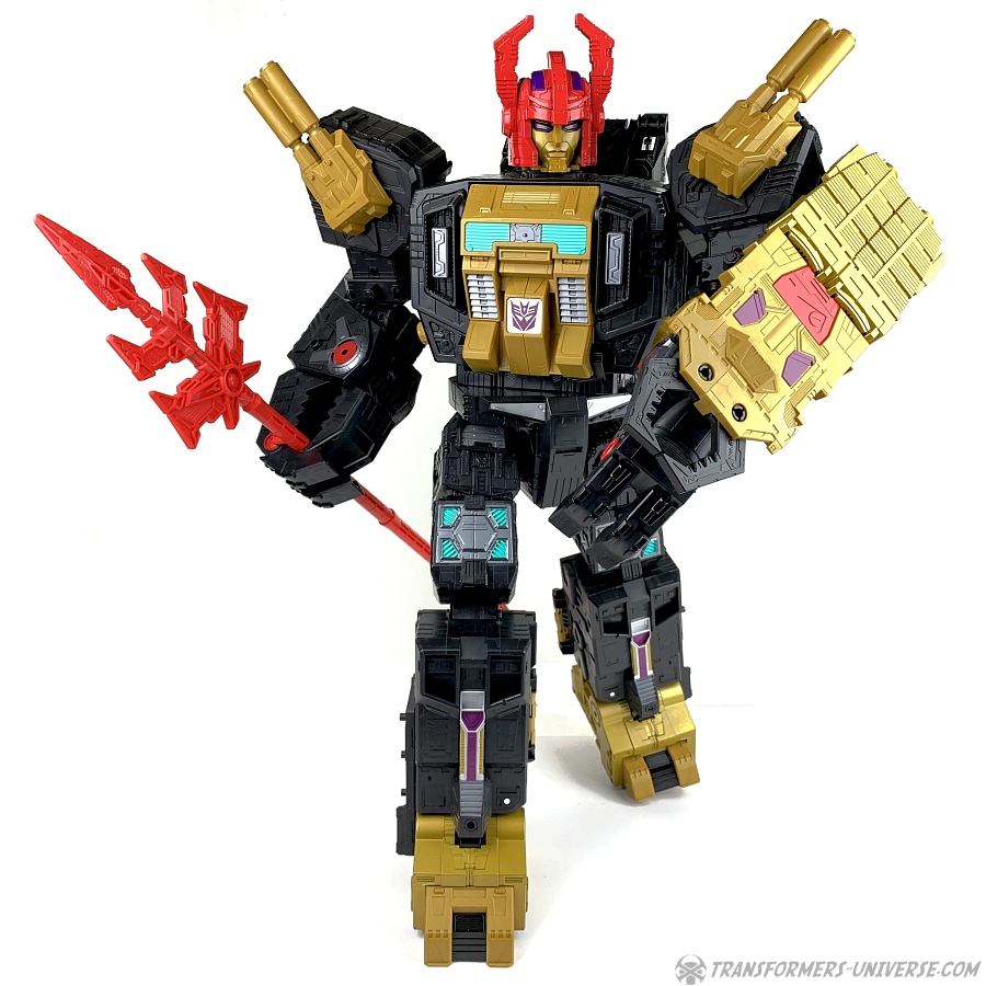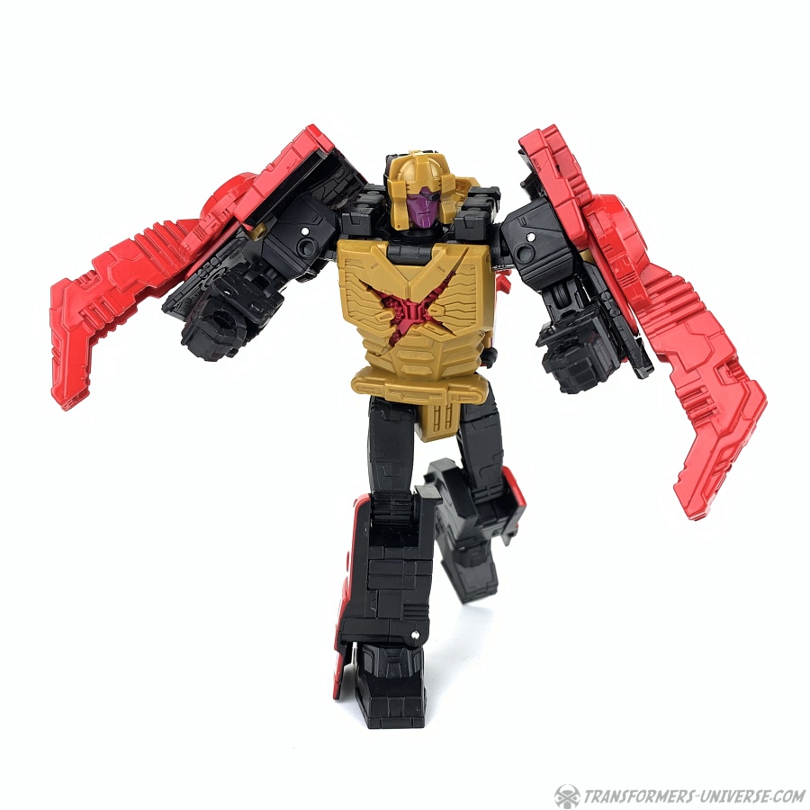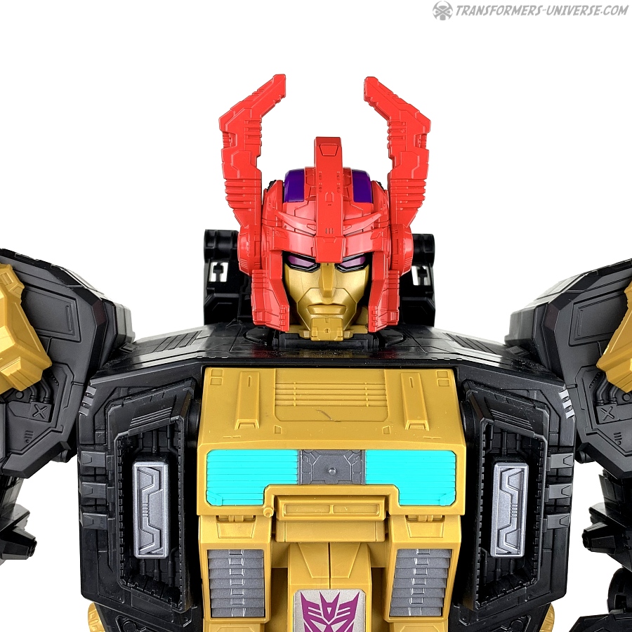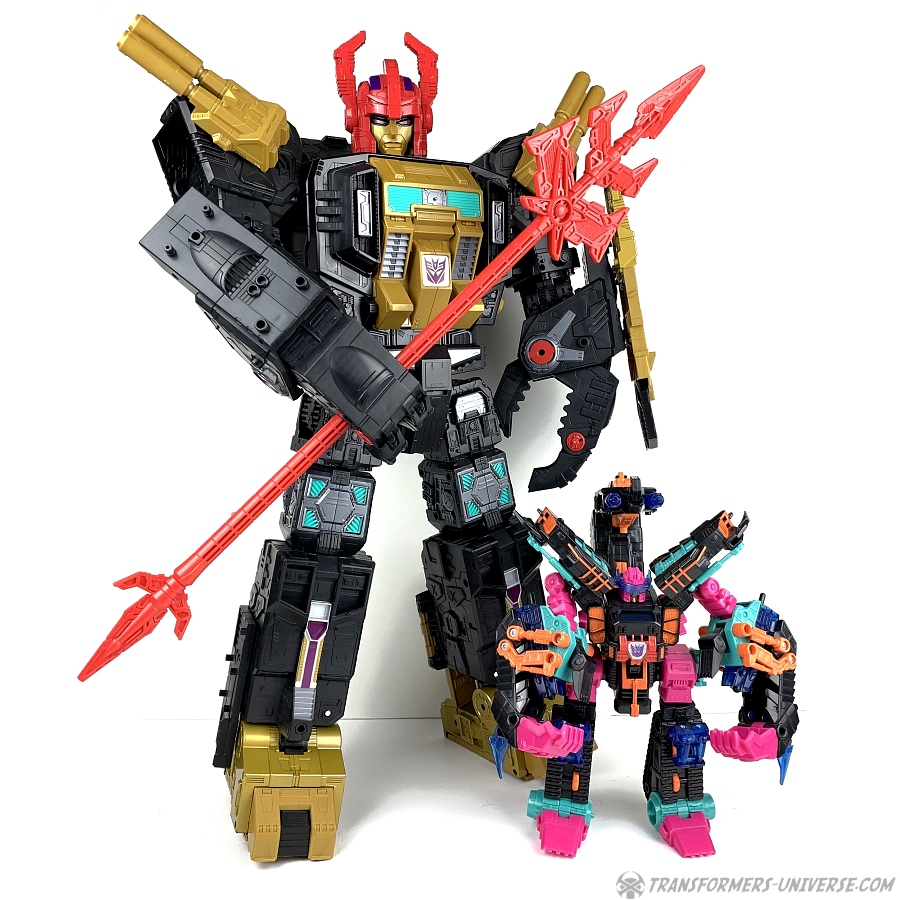 Black Zarak is very nicely articulated, and his big feet give him a stable platform. Despite his size, he can easily perform a kick without toppling over. His huge claws are articulate and can easily hold his primary weapon, the Tyrant spear, and even his own head (more on that below). Additional weapons are the double-barreled guns on his shoulders. Slight point deduction: he only comes with two of those guns instead of four like his G1 counterpart. There are upgrade sets for that, sure, but why not include four guns to start with?