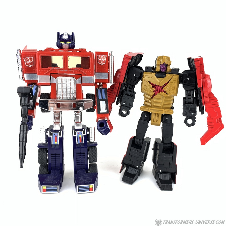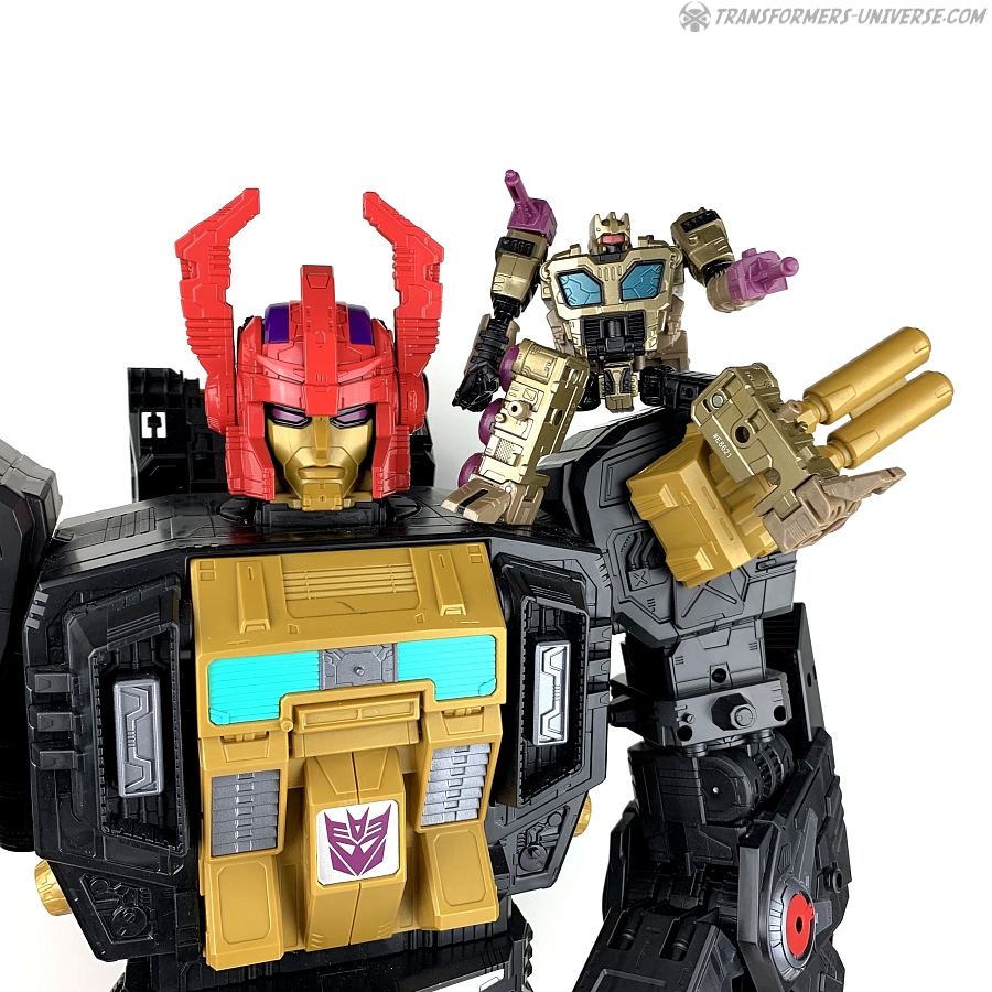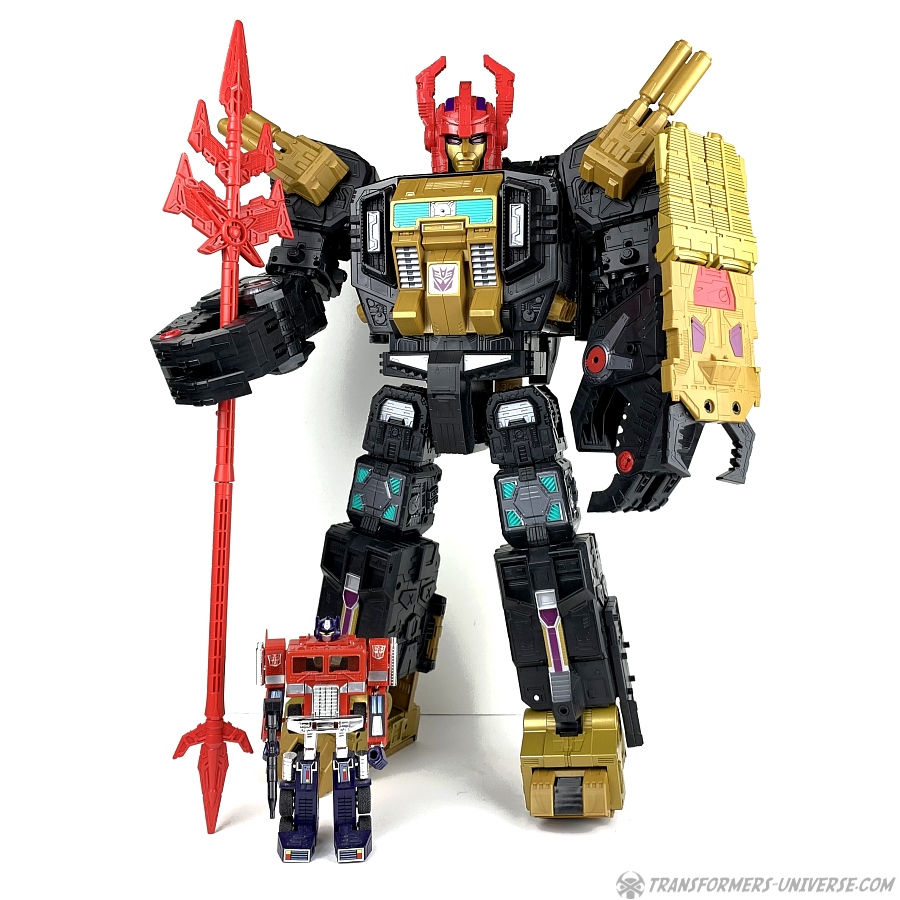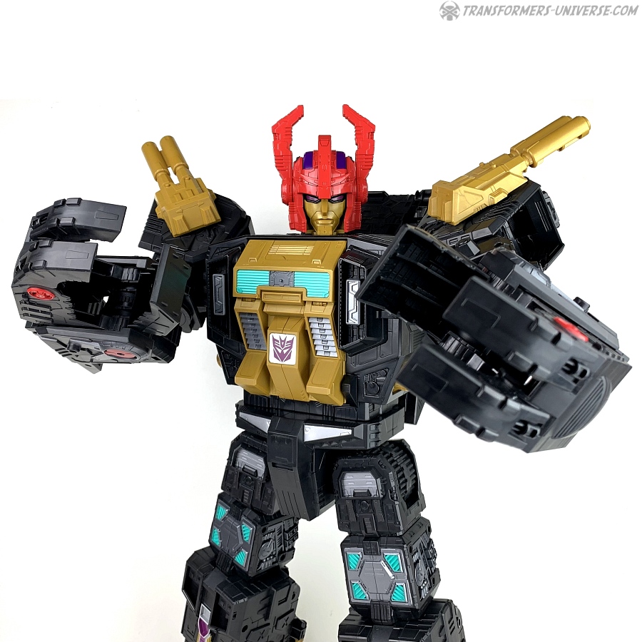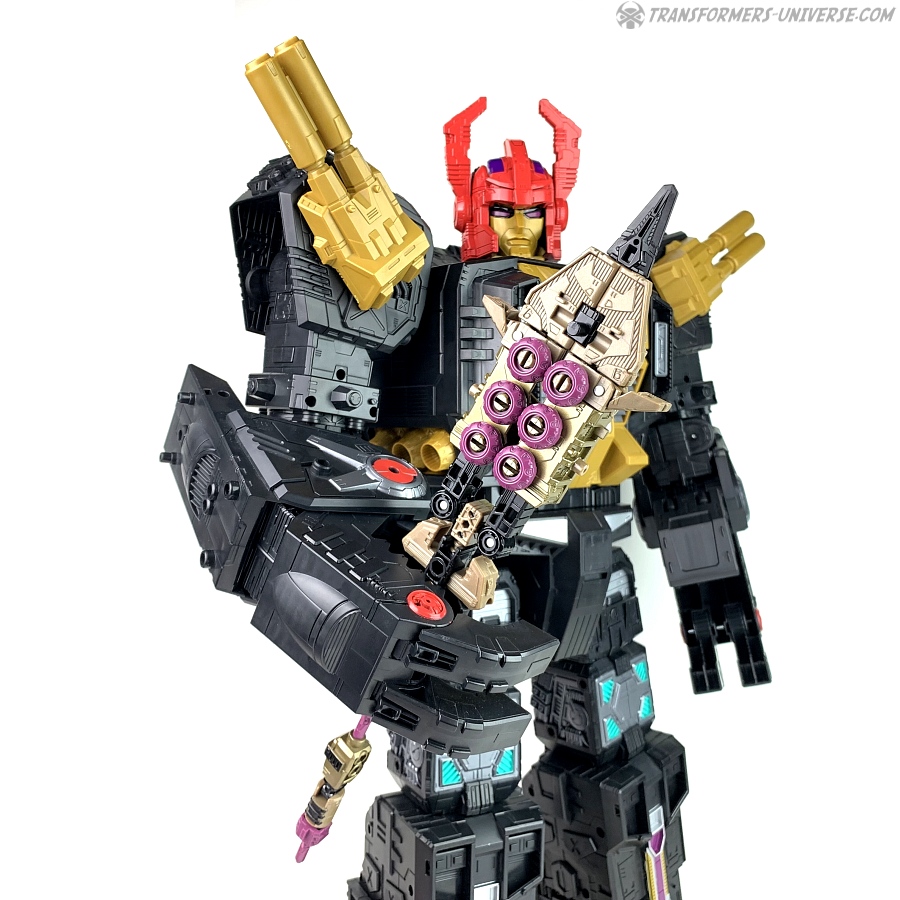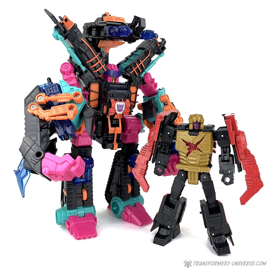 Black Zarak is very nicely articulated, and his big feet give him a stable platform. Despite his size, he can easily perform a kick without toppling over. His huge claws are articulate and can easily hold his primary weapon, the Tyrant spear, and even his own head (more on that below). Additional weapons are the double-barreled guns on his shoulders. Slight point deduction: he only comes with two of those guns instead of four like his G1 counterpart. There are upgrade sets for that, sure, but why not include four guns to start with?