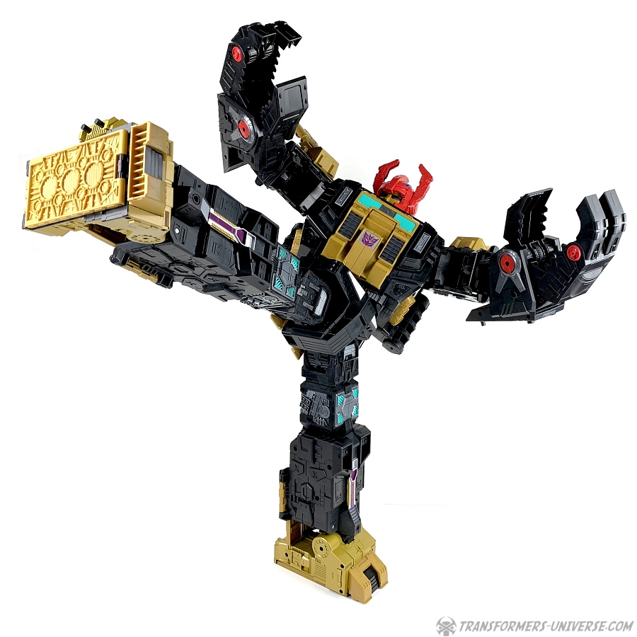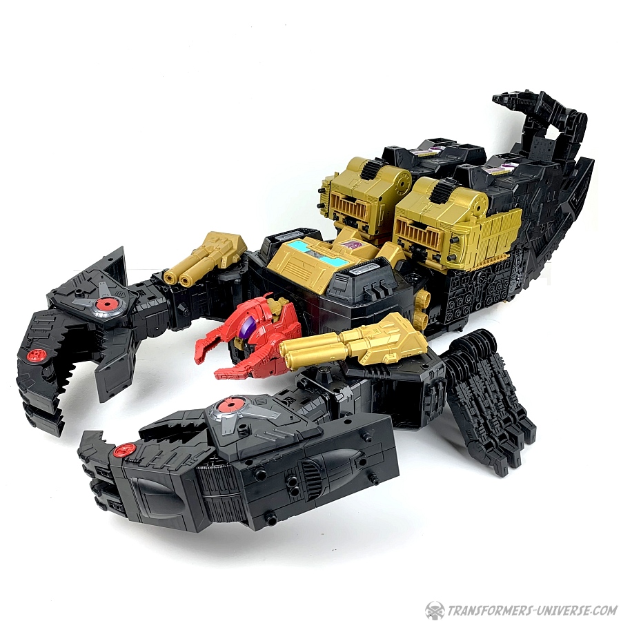 In the Masterforce cartoon Black Zarak had a sort-of fourth mode, called hydra mode. It’s really just the scorpion mode with the scorpion legs folded in and the head removed. Now the Titan is technically capable of achieving that mode, but it looks far less streamlined than in the cartoon and the claws don’t really make for convincing hydra heads.