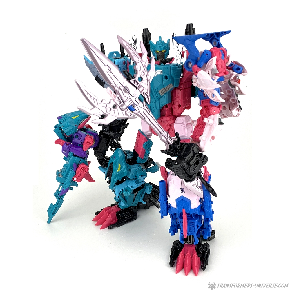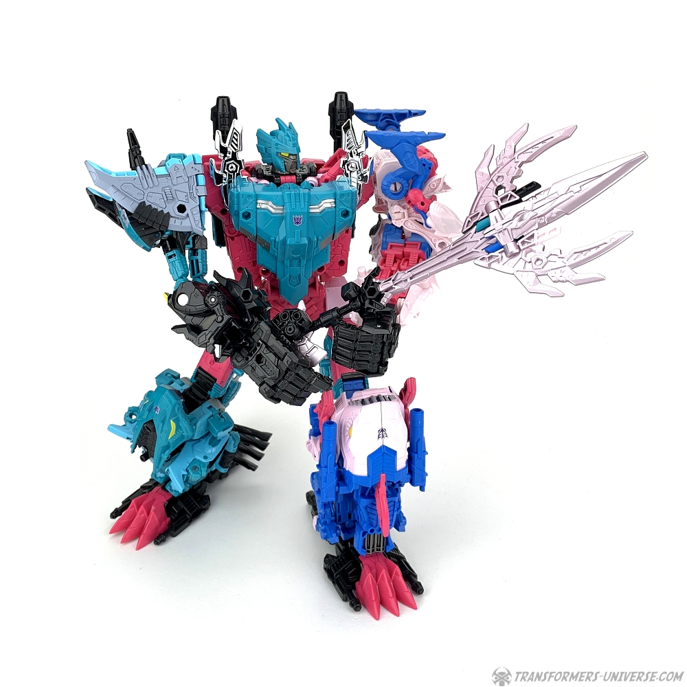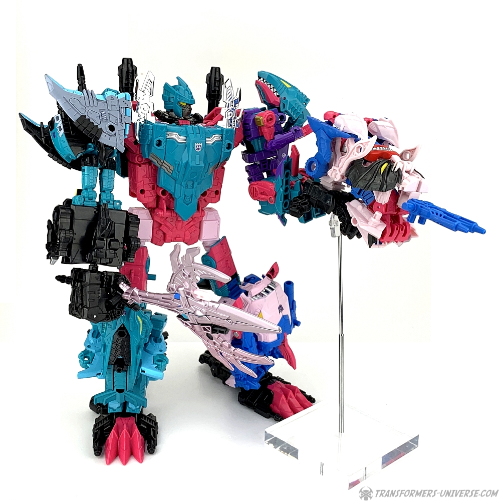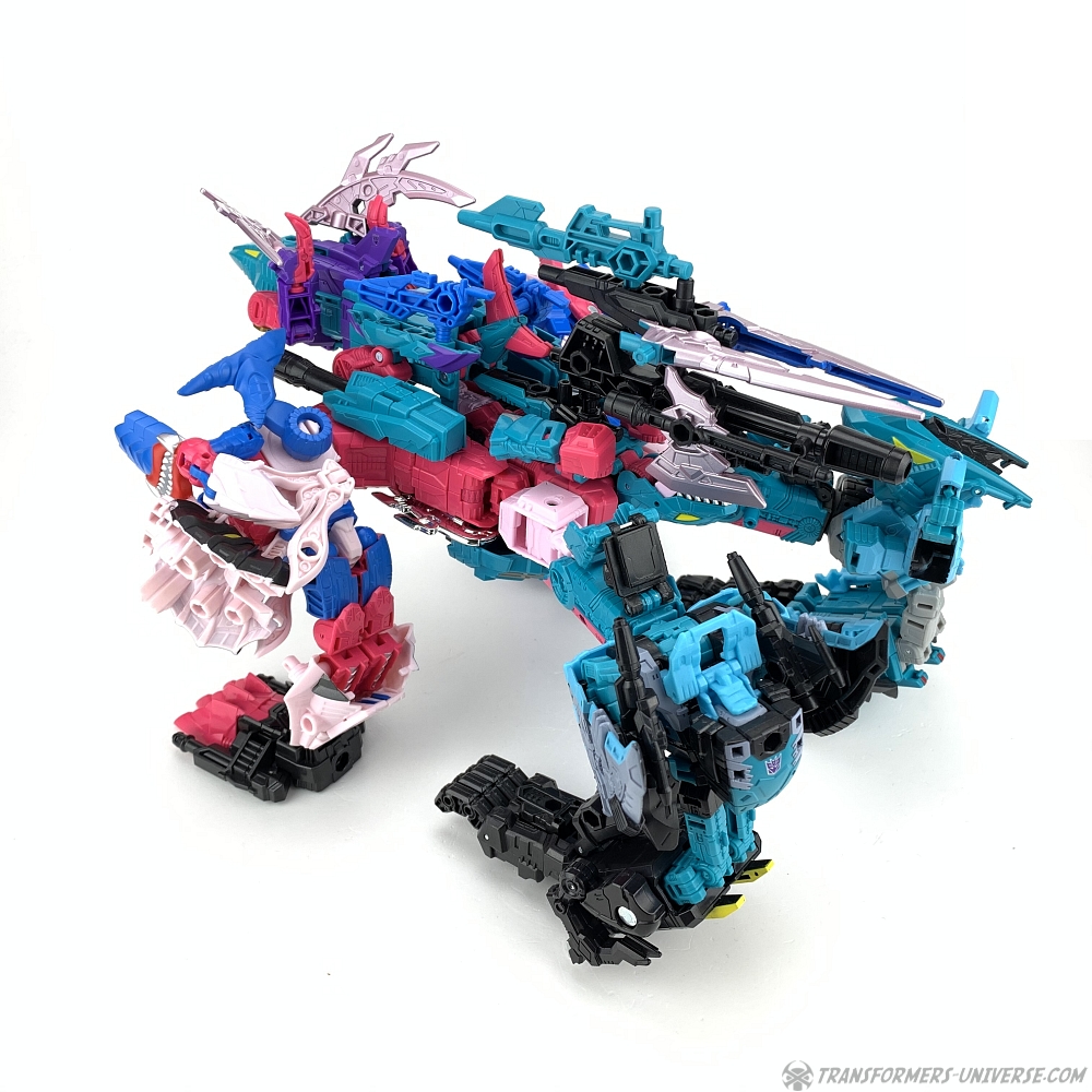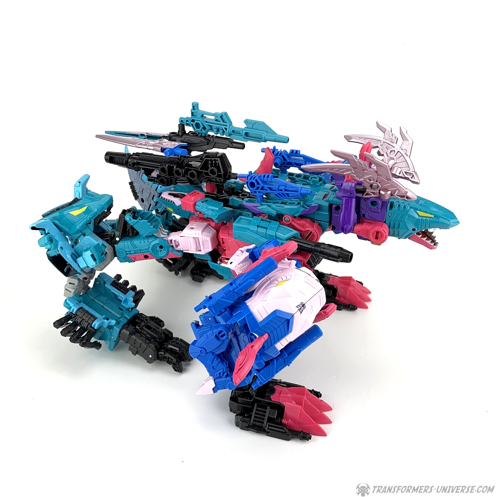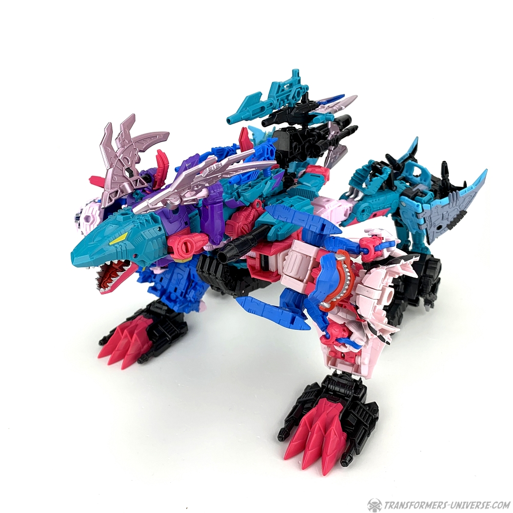 Overall King Poseidon is a pretty good combiner. His main selling point is the sixth member Targetmaster gimmick, of course, which doesn’t work that great, but apart from that I really like him. There is, of course, another way to assemble him, too. Let’s go into beast mode!