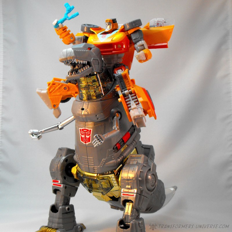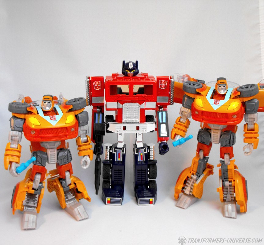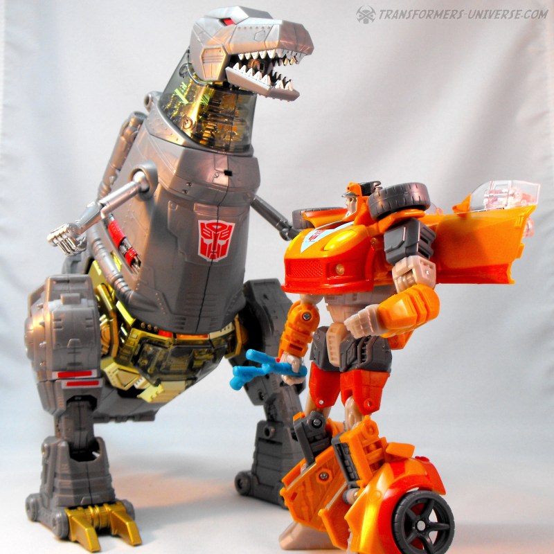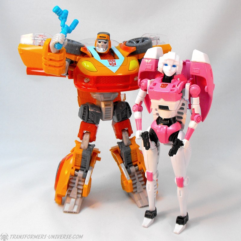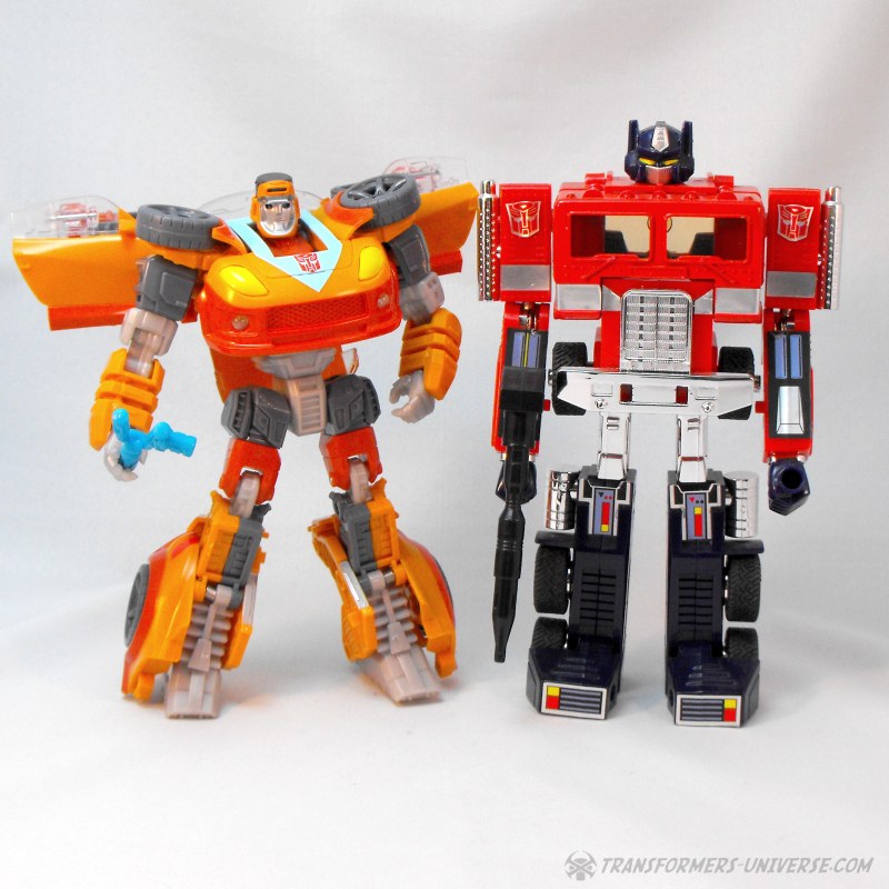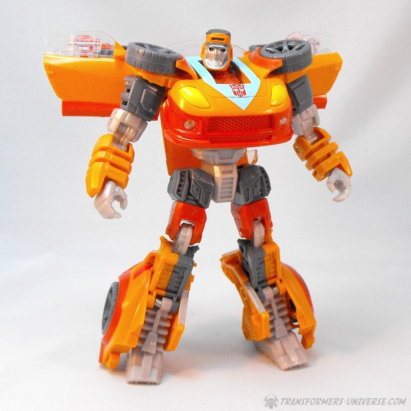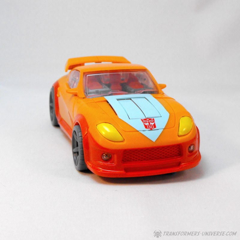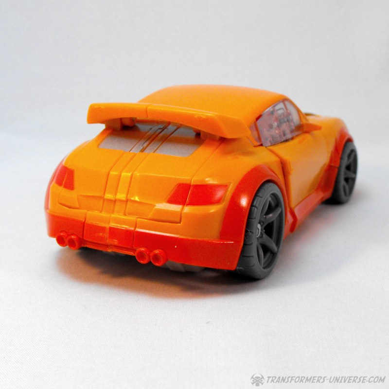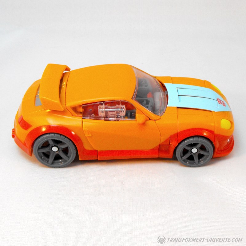 Remarks: Wheelie is a repaint with a new head of Special Ops Jazz, so this review here will focus on the changes. Wheelie is, of course, a homage to G1 Wheelie and has gotten an appropriate orange paint job. He has also gotten a new head, which is pretty much a dead ringer for the head of the TV version of Wheelie (which the G1 toy didn’t really resemble much). Finally, Jazz’ gun was replaced by a blue slingshot, loosely resembling the weapon Wheelie wielded in the 1986 Transformers movie (though he also used a gun later on). The slingshot can also function as a kind-of gun, though it looks better in its “primary” mode.