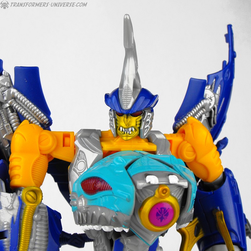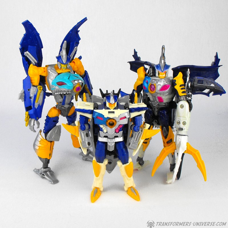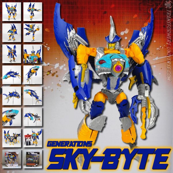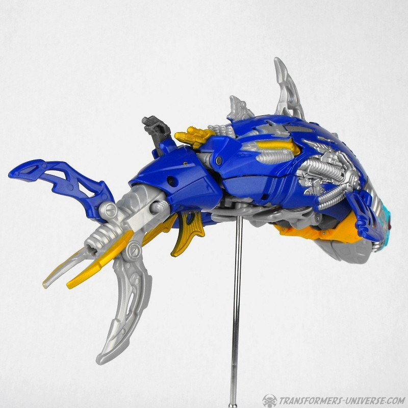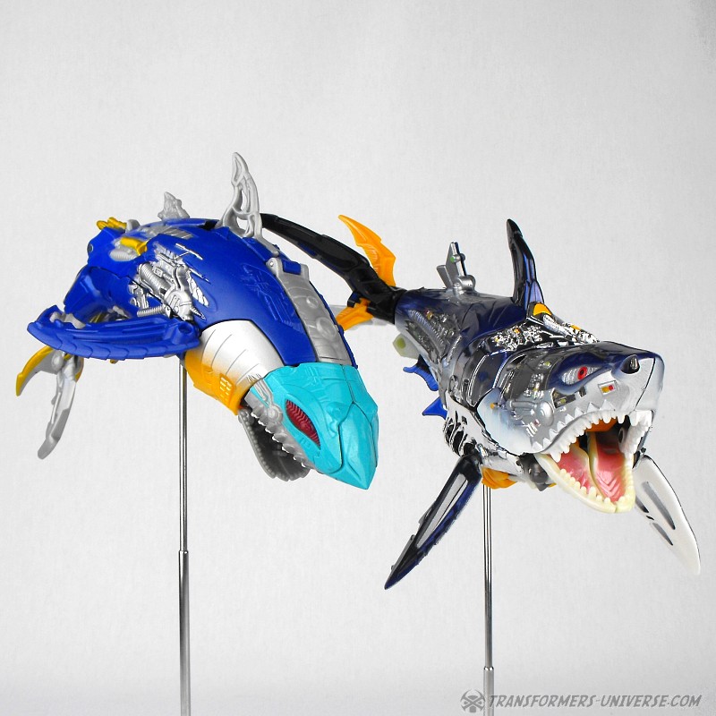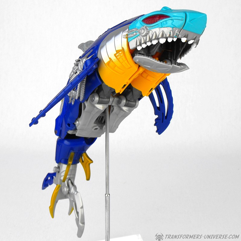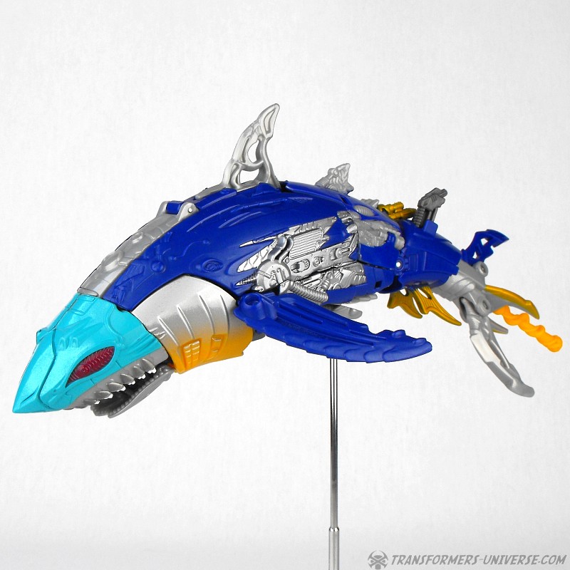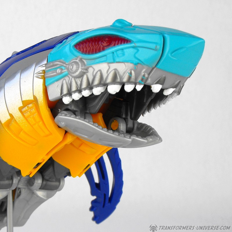 Remarks: The original Robots in Disguise cartoon from 2001 was little more than a filler series, bridging the gap between the end of Beast Machines and the beginning of Armada. Even the Japanese original Car Robots was little more than an experimental attempt to see whether fans would – after the lengthy beast era of Transformers – be interested in vehicle Transformers again. In terms of characters and stories little is remembered of RID these days except for two things: One being the first in-story evil clone of Optimus Prime – Scourge aka Black Convoy – and, of course, the greatest shark in town, Sky-Byte.