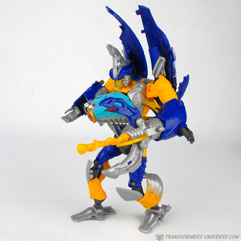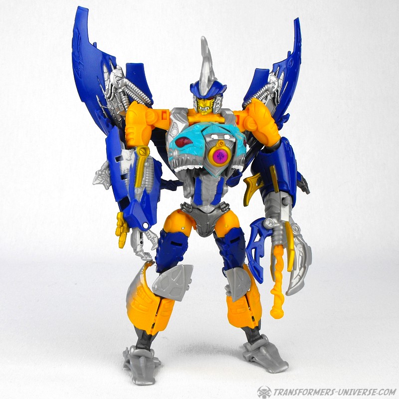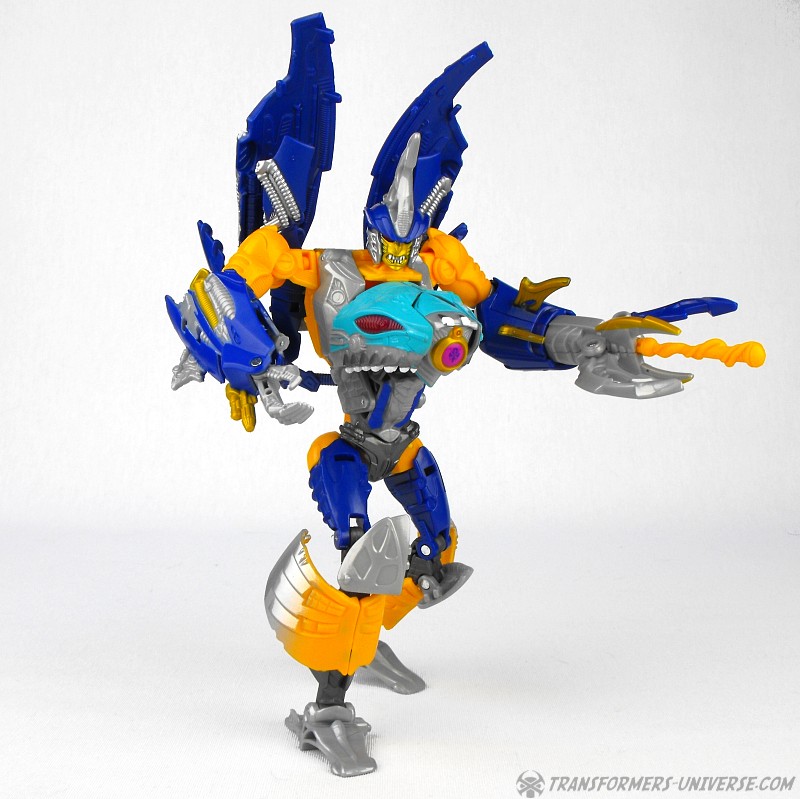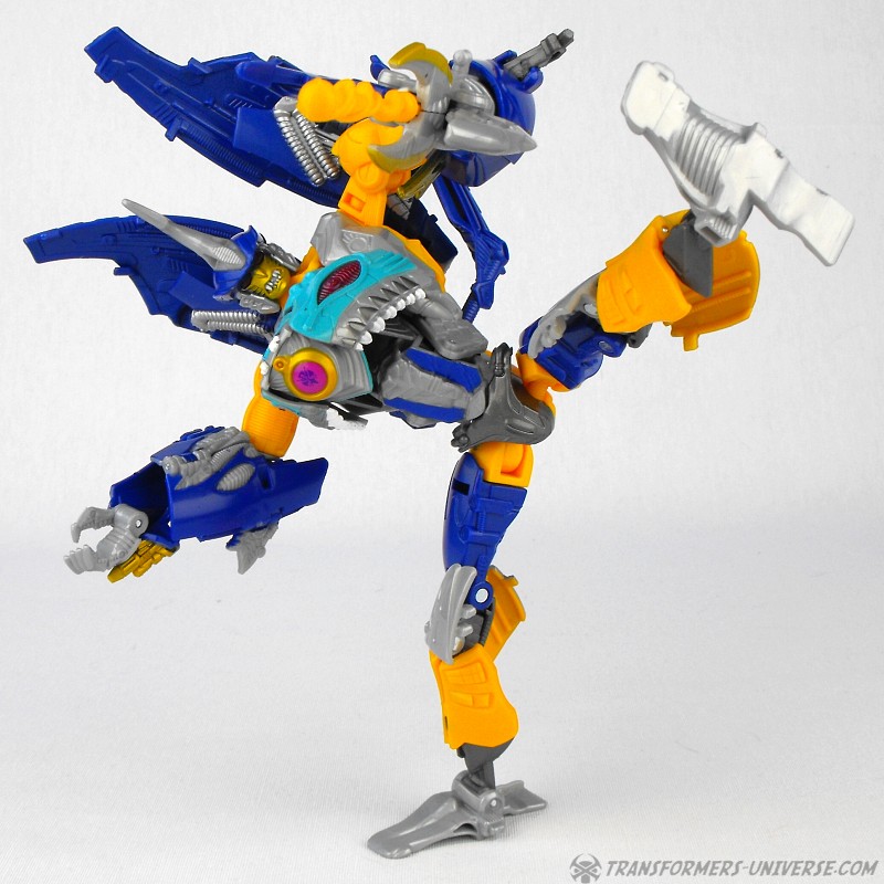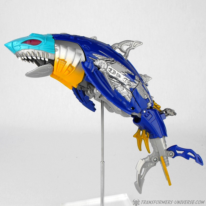 Generations Sky-Byte lacks the in-mouth missile launcher of his predecessor, but I don’t really mind that. The beast mode looks pretty cool, everything holds together quite well, and the gimmick of spinning the claw (now the tail) still works in this mode as well. So bottom line: a cool beast mode for the greatest shark in town. No complaints at all.