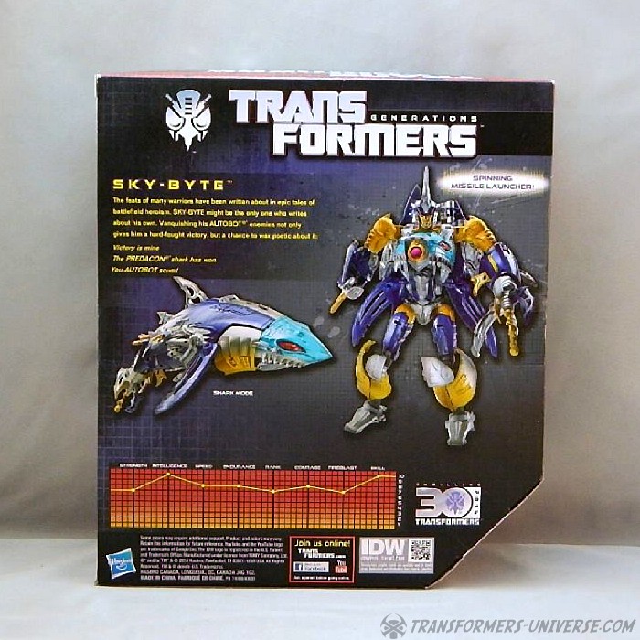 The feats of many warriors have been written about in epic tales of battlefield heroism. Sky-Byte might be the only one to who writes about his own. Vanquishing his Autobot enemies not only gives him a hard-fought victory, but a chance to wax poetic about it.