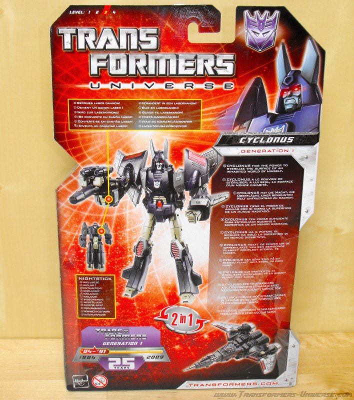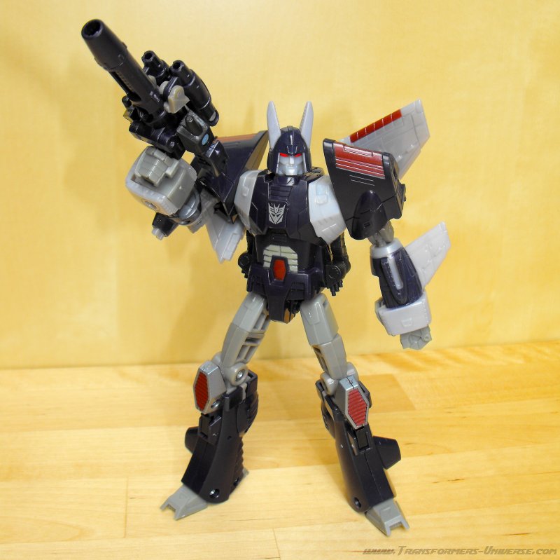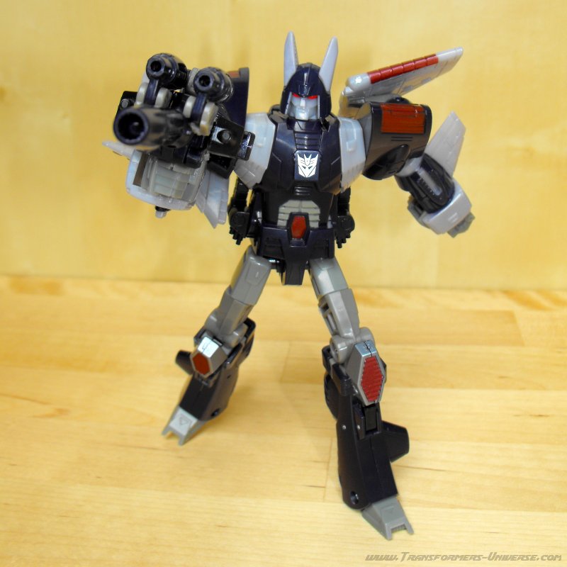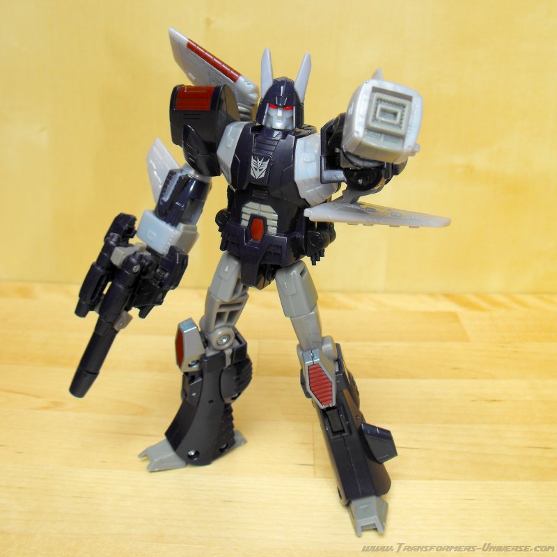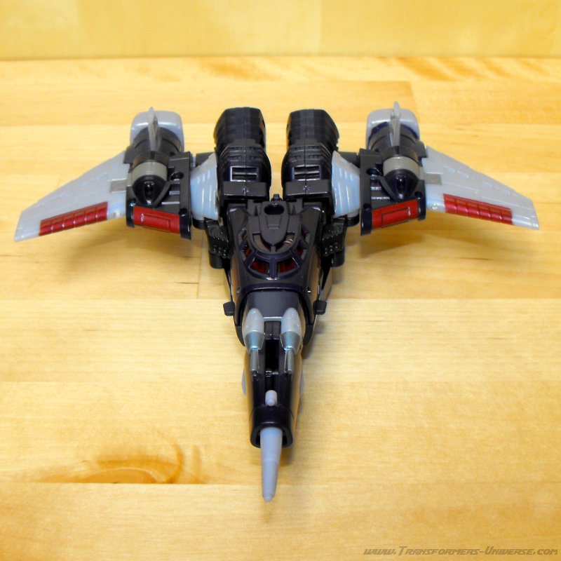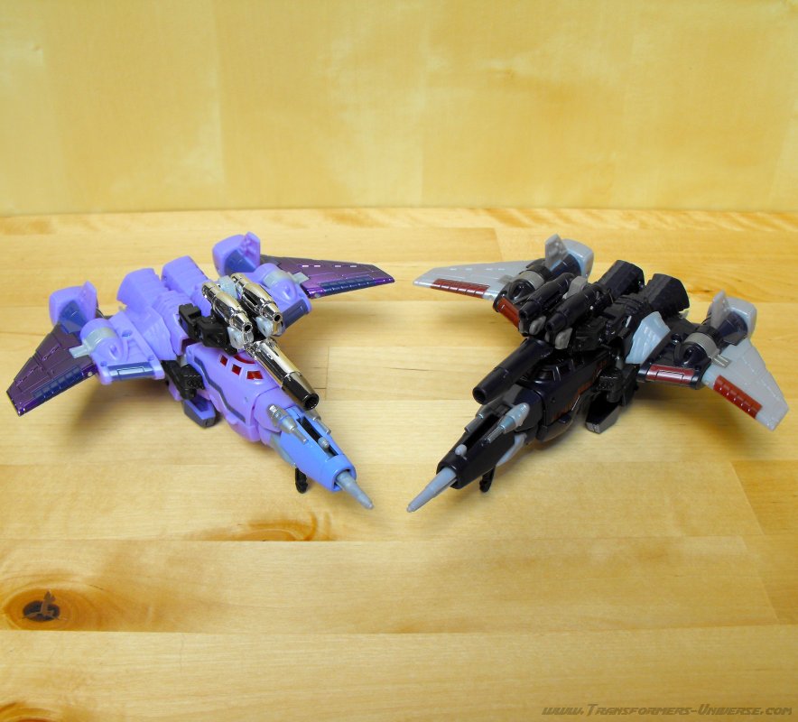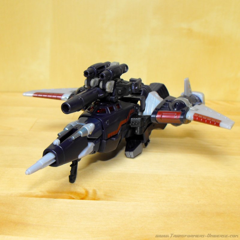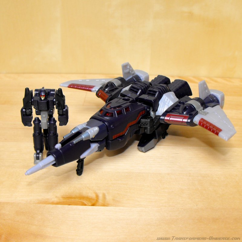 Remarks: Seeing as I've already done a full review for the Henkei! Henkei! version of Cyclonus, I'm only going to focus on the differences between the two figures here. Apart from the lack of chrome parts, the only difference is in the paint job. While the japanese version adhered closely to Cyclonus animated appearance, the US version here sticks closer to the paint job of the original G1 Cyclonus toy with a purple so dark it's almost black. It doesn't look bad, but the contrast to the unpainted gray plastic parts is much more pronounced here than in the Henkei version, giving the figure a somewhat unfinished look in my opinion. So of the two Cyclonus figures, I prefer the Henkei one.