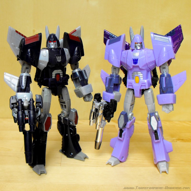Interestingly enough Cyclonus' Targetmaster partner Nightstick actually received a more detailed paint job than his Henkei counterpart. He lacks the chromed legs, but instead of an all-red face he has red eyes and a golden face, which looks a whole lot better. Still, in direct comparison the Henkei figures still beat out the US versions by a fair margin and the only reasons I own this one are a) because he was on sale and b) I finally wanted to give Cyclonus his "Armada". It's still a brilliant mold and if you don't want to spend the money to import the Japanese version, there is nothing wrong with getting this one (or the Reveal the Shield version, on sale right now). Not quite as good as the Henkei version, but still very good.