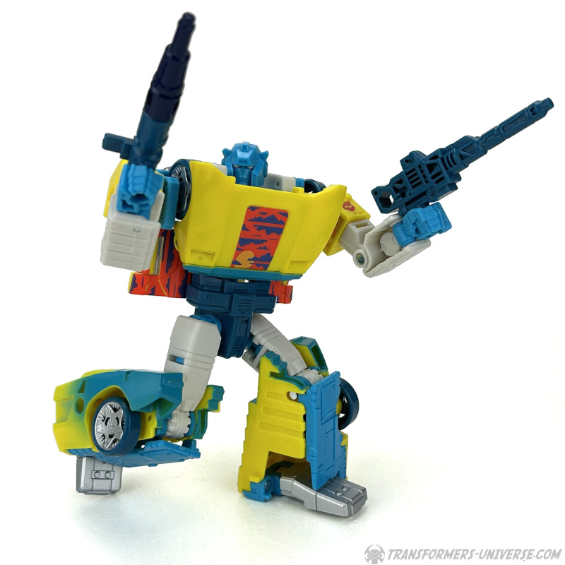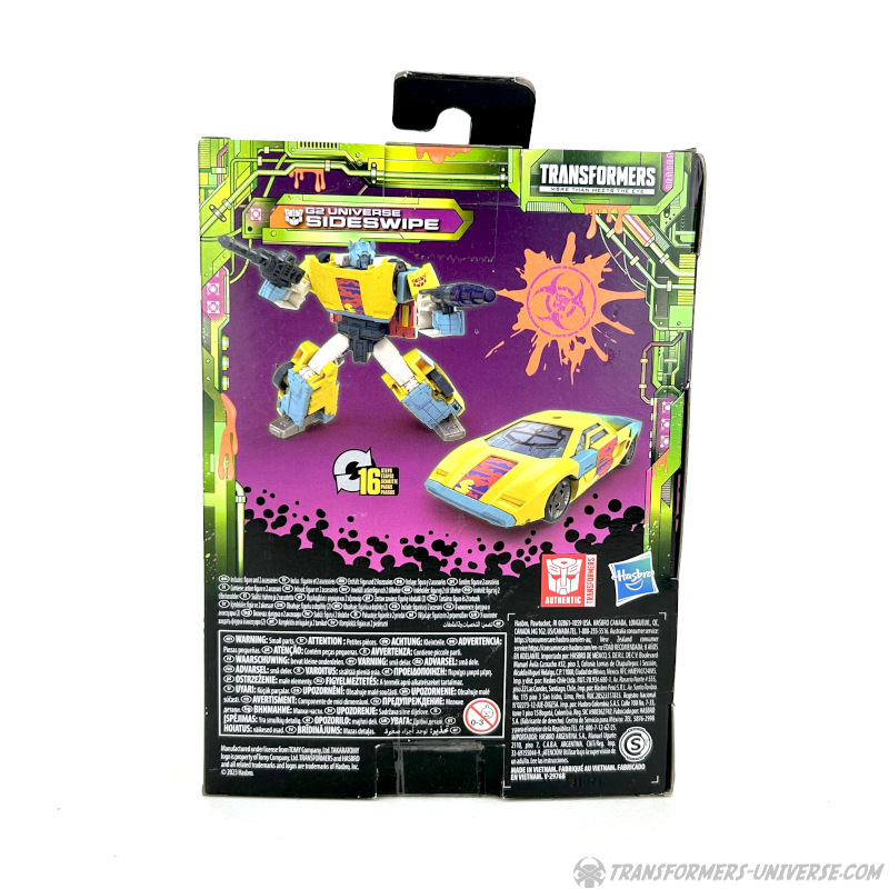 Remarks: Sideswipe is part of the so-called Toxitron Collection, a subline or capsule of the Legacy Evolution series that is (in the US, at least) exclusive to Walmart stores. They are based on unreleased concepts for repaints in the Generation 2 line, so the nostalgia is strong with these ones. Of course Sideswipe never sported these colors in any media, so this is really just a 1990s thing for the people who were kids or teens during that time. Or, you know, people of all ages who just dig the colors.