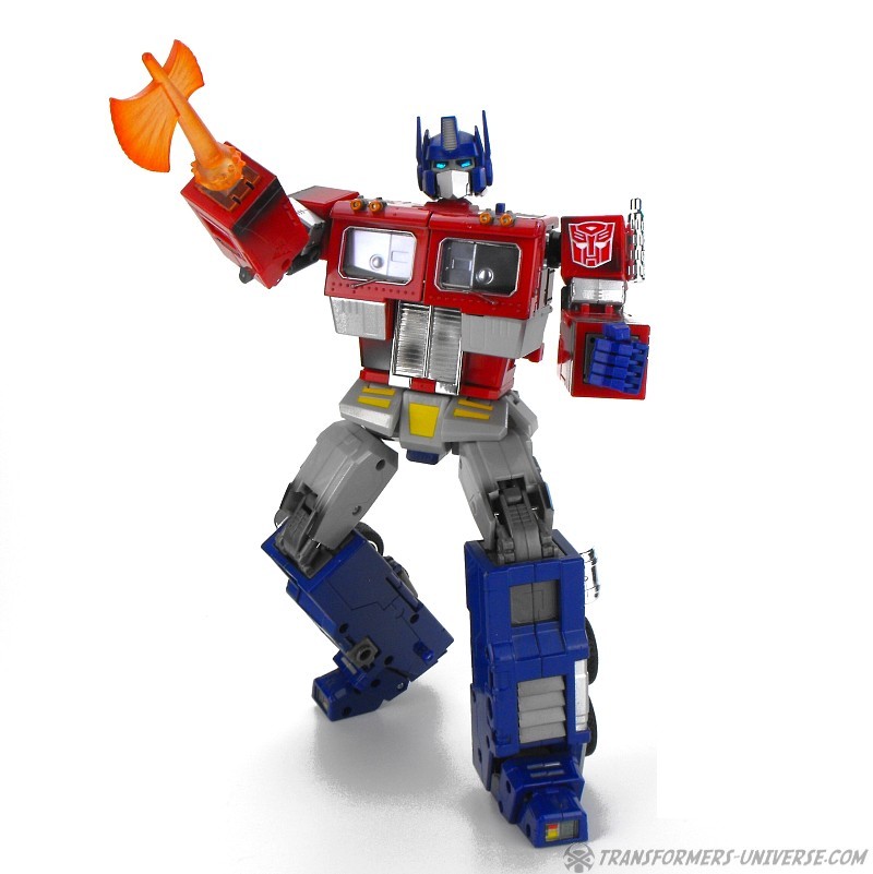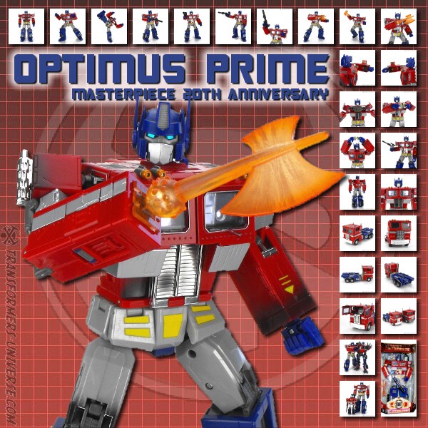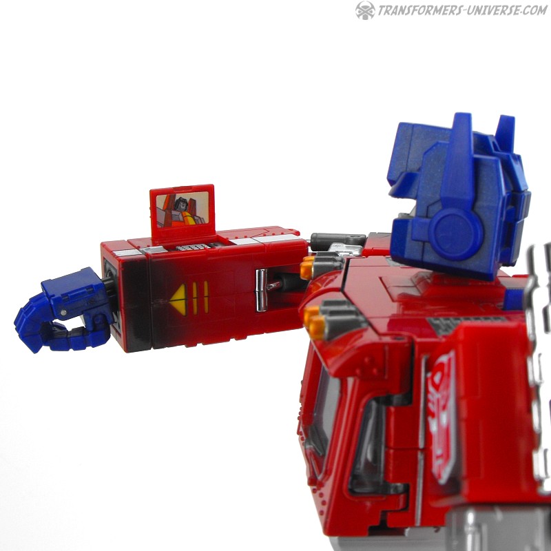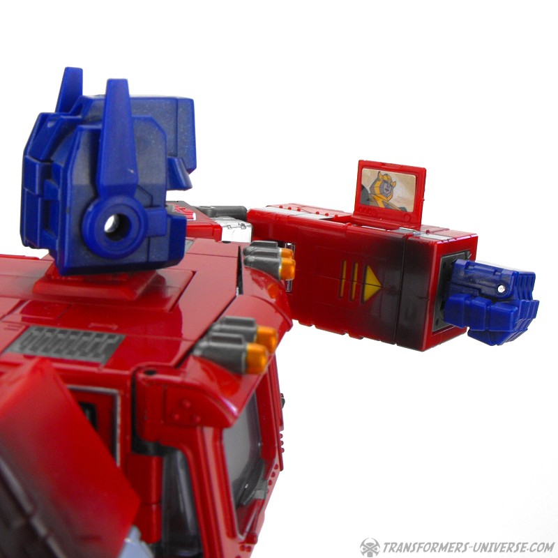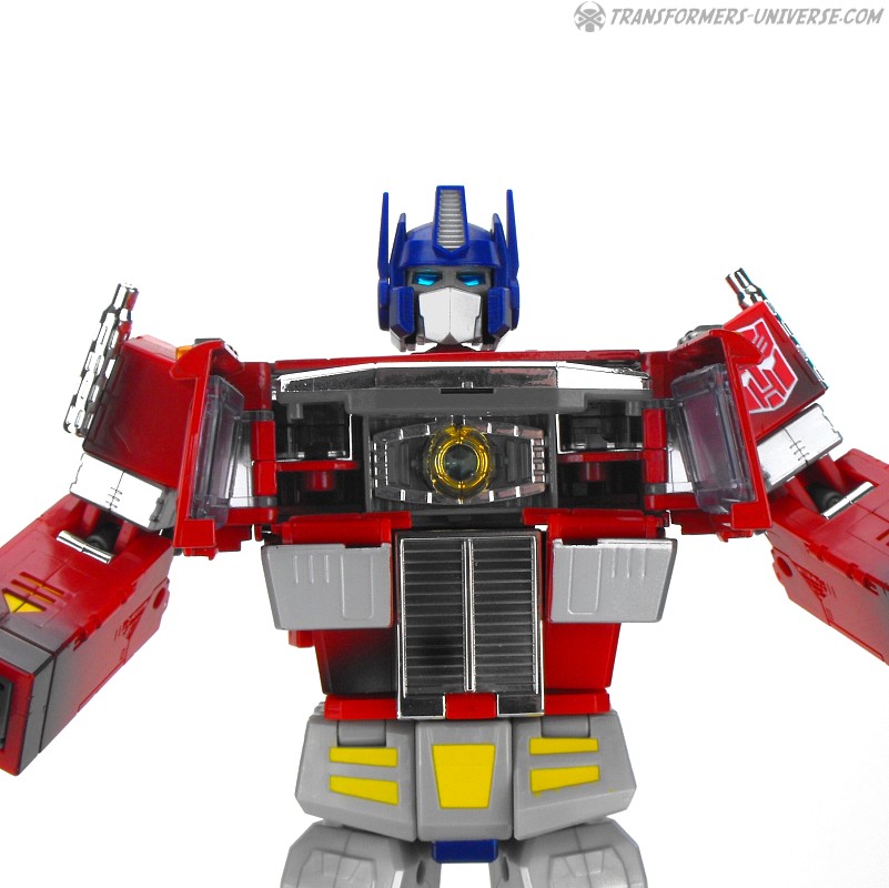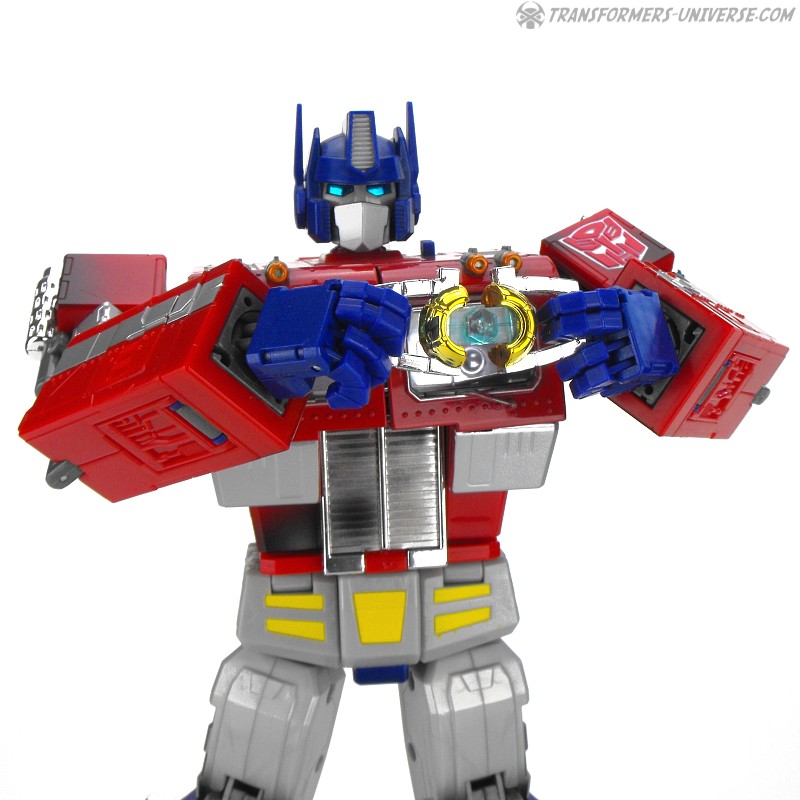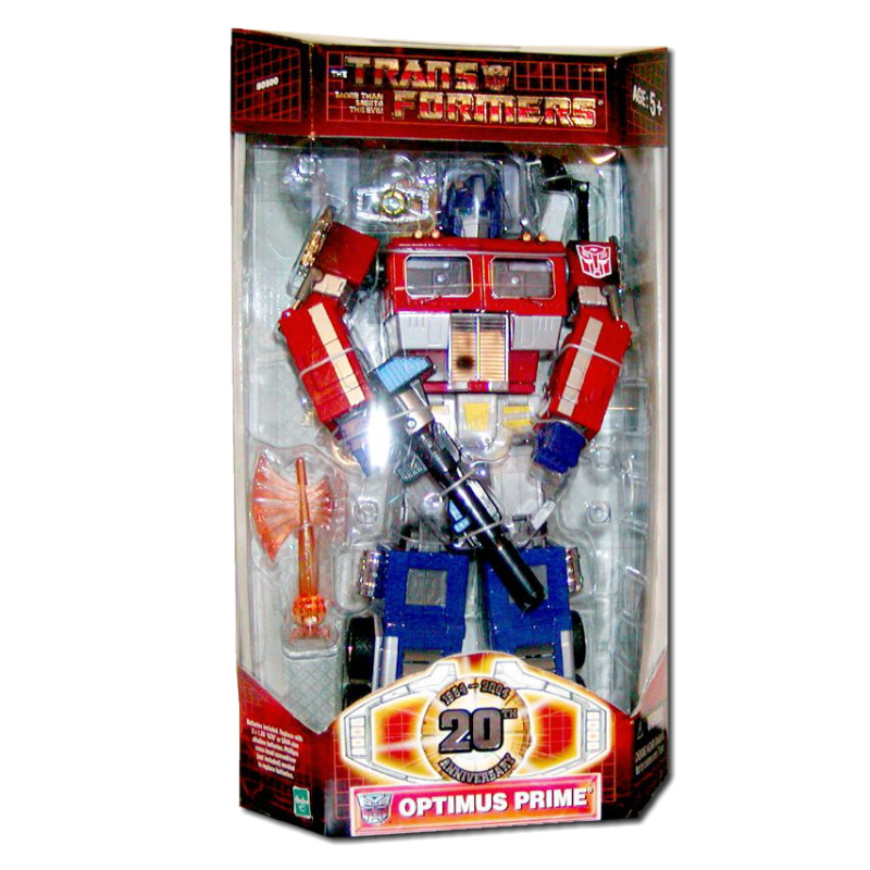 Remarks: Twenty years of Transformers and Hasbro and Takara decided to issue a special edition of the favorite Transformer of them all. The design closely mirrors the original G1 cartoon version, including his many extras such as the communicators in his forearms or the Matrix in his chest..