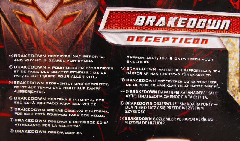 Prelude: First off, many thanks to my friend Marco aka Ironhide77, who gave me Brakedown here as a gift during our last visit. And in case you’re wondering about the pictures, Brakedown was the first figure where I tried out my light studio’s black background (seeing as he’s mostly white and might get lost before a white background). Not sure about the results, though. Let me know what you think, okay?