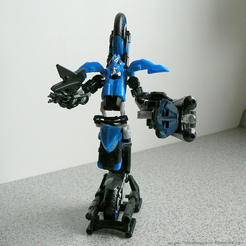 Conclusion: It's a shame what became of Arcee/Chromia. Why didn't they use her design from the first movie? That was a pretty cool figure and easily recognisable as female. This toy here, though, is crap, I'm sorry to say. A 5-year-old could have designed it better. I'm still angry that I spent twenty Euros on this piece of junk. So unless you're the kind of guy who blindly buys everything with a Transformers logo on it, I recommend giving this figure here a wide berth. Nothing more I can say about this junk-pile.