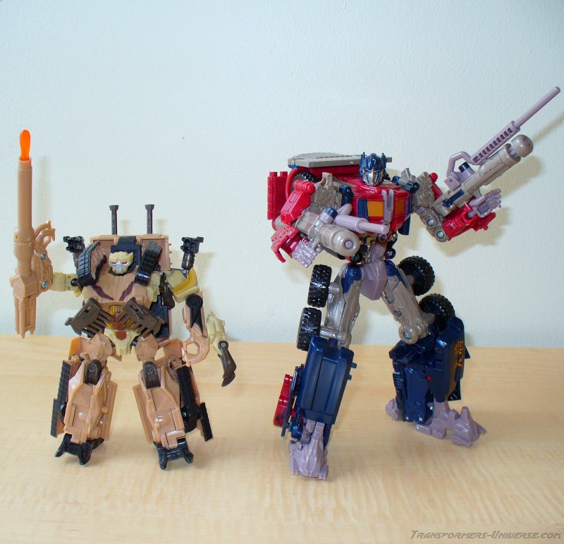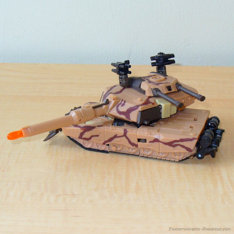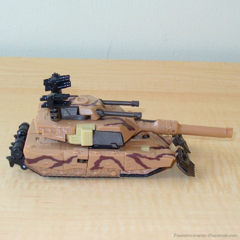 Alternate Mode: Brawl still has his modified M1 Abrahms tank mode. It is still very good looking, but the desert paint is much more applicable to the “War in Iraq.” My only complaint is that you cannot move the turret without exposing the head. Other than that he is damn near a perfect tank. His turrets move independently and his missile pods have unlimited positions, but none of the cannons can move up or down. Despite this shortcoming, he still has a near perfect alt-mode.