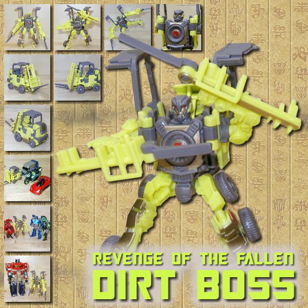Alternate Mode: I don't think there's ever been a Transformers before who transformed into a fork lift. I can't remember a single one. So unless I'm very much mistaken Dirt Boss is the first TF with this alternate mode. Congratulations, Dirt Boss. It's not easy to find alternate forms that haven't been used before, so props for originality at the very least.