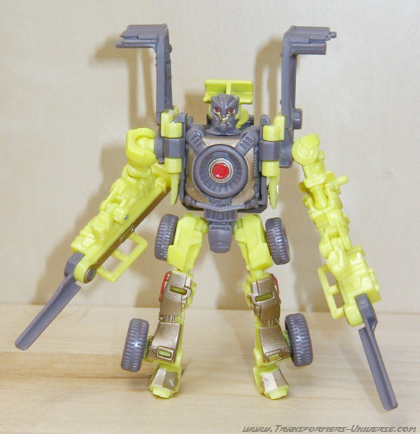 Remarks: First off, as far as I know Dirt Boss is not a member of the Constructicons and does not become part of Devastator in the Movie. Look-wise he'd fit into that bunch, though. Anyway, Dirt Boss might just be the most traditional-looking among the first wave of ROTF Scouts, which is kind of ironic seeing as he has the most original vehicle mode I've seen in a long time. He's got an almost humanoid face and somehow manages to look old-school. We'll see if he's part of the actual Movie line-up (which I doubt) or makes an appearance in the comics (which is more likely).