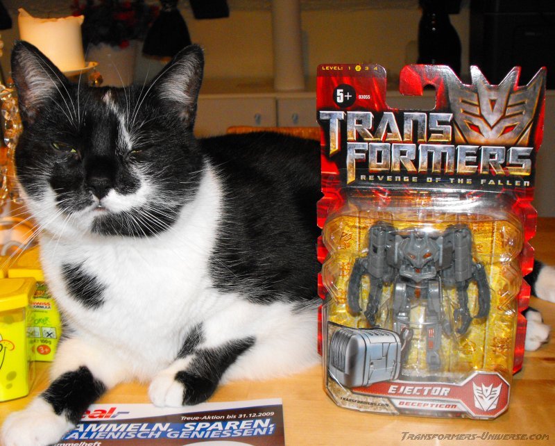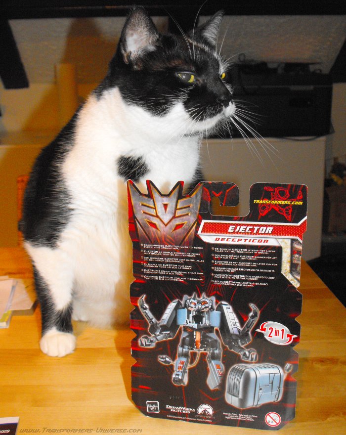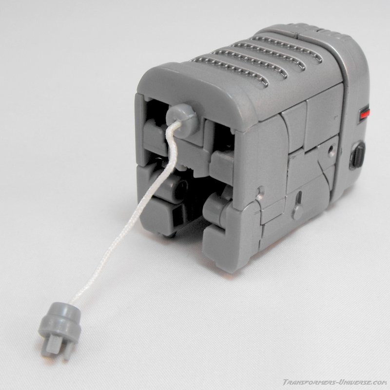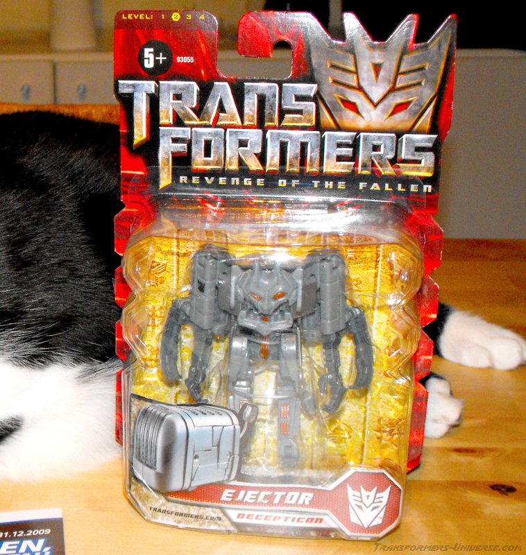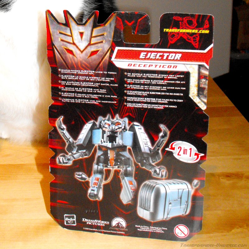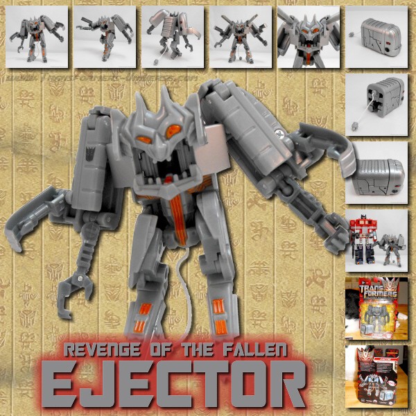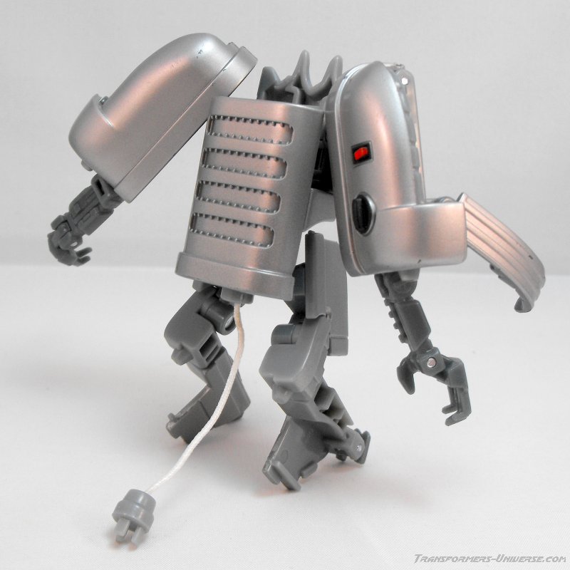 Remarks: Ejector was created in the 2009 Transformers movie when Sam Witwicky found a splinter of the AllSpark Cube in his pants and it caused a bunch of kitchen appliances to come alive. All of these were subsequently terminated by Bumblebee (along with a large portion of the Witwicky home). Their remains were later recovered by Ravage, who was under the control of a human agency, and used to feed a newly created replica of the AllSpark Cube (in Tales of the Fallen and the Nefarious comic series). Ejector is the only ‘kitchen-bot’ to date to receive a toy version.